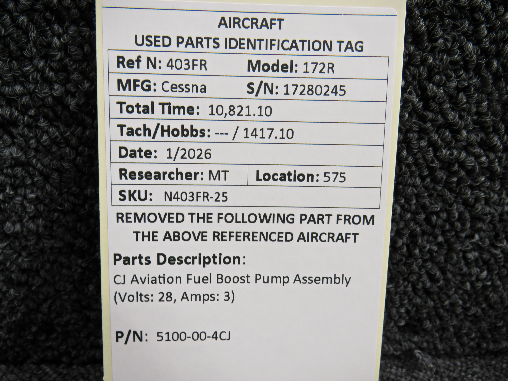 Unless specifically noted, most of our used airplane parts are sold in the condition they were removed, which means you should expect the usual signs of wear and tear.