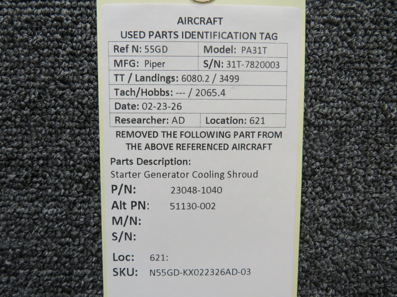 Every part is carefully inspected throughout our process and several times before it goes online. Most items are sold as-removed, just as they came off the aircraft. These parts are not functionally tested. What we do provide is clear photos, full traceability when available, pricing that reflects the as-removed condition, and a no-nonsense 90-day return window.