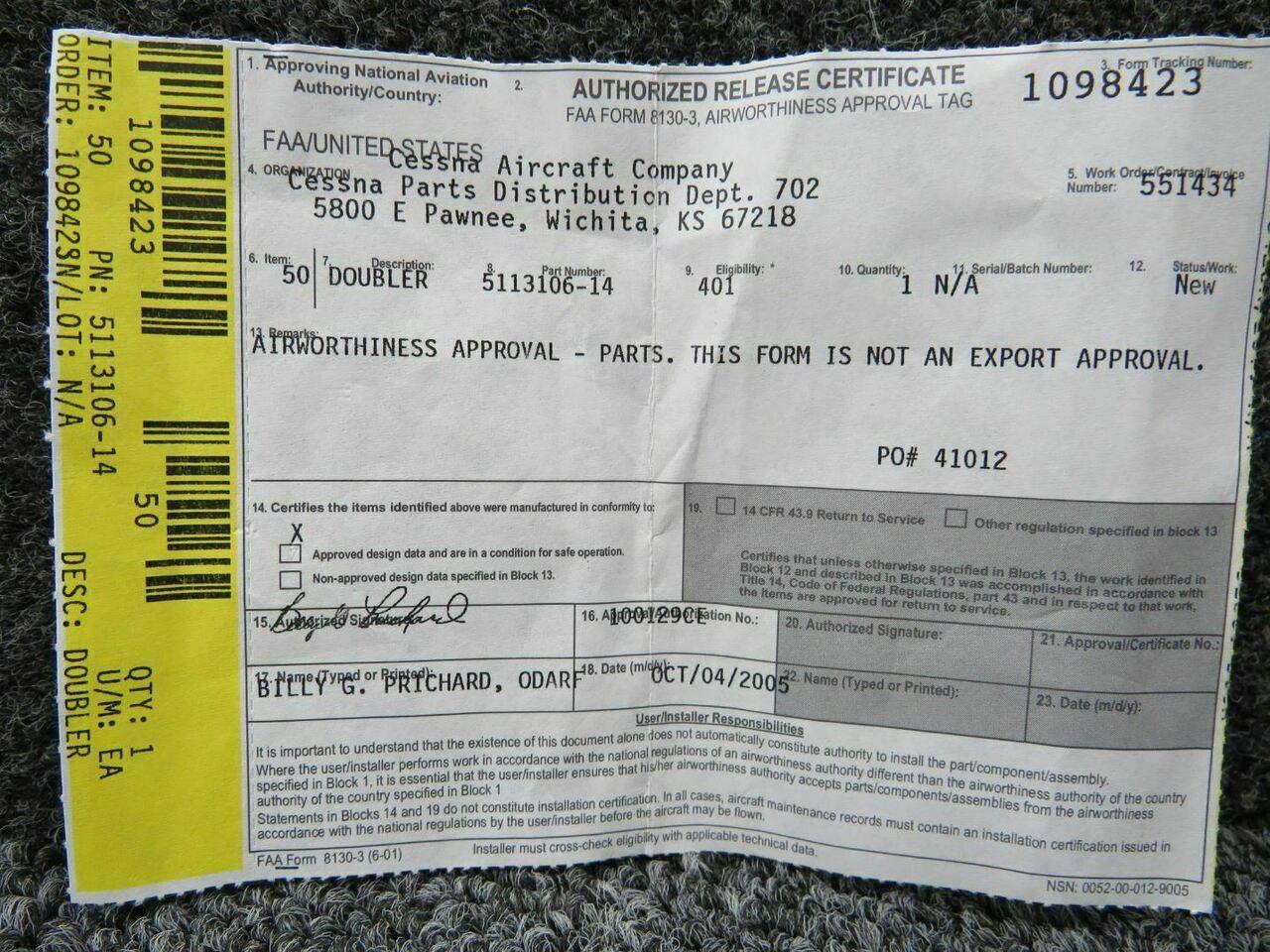 5113106-14 Cessna Doubler (NEW HAS 8130-3) (SA)