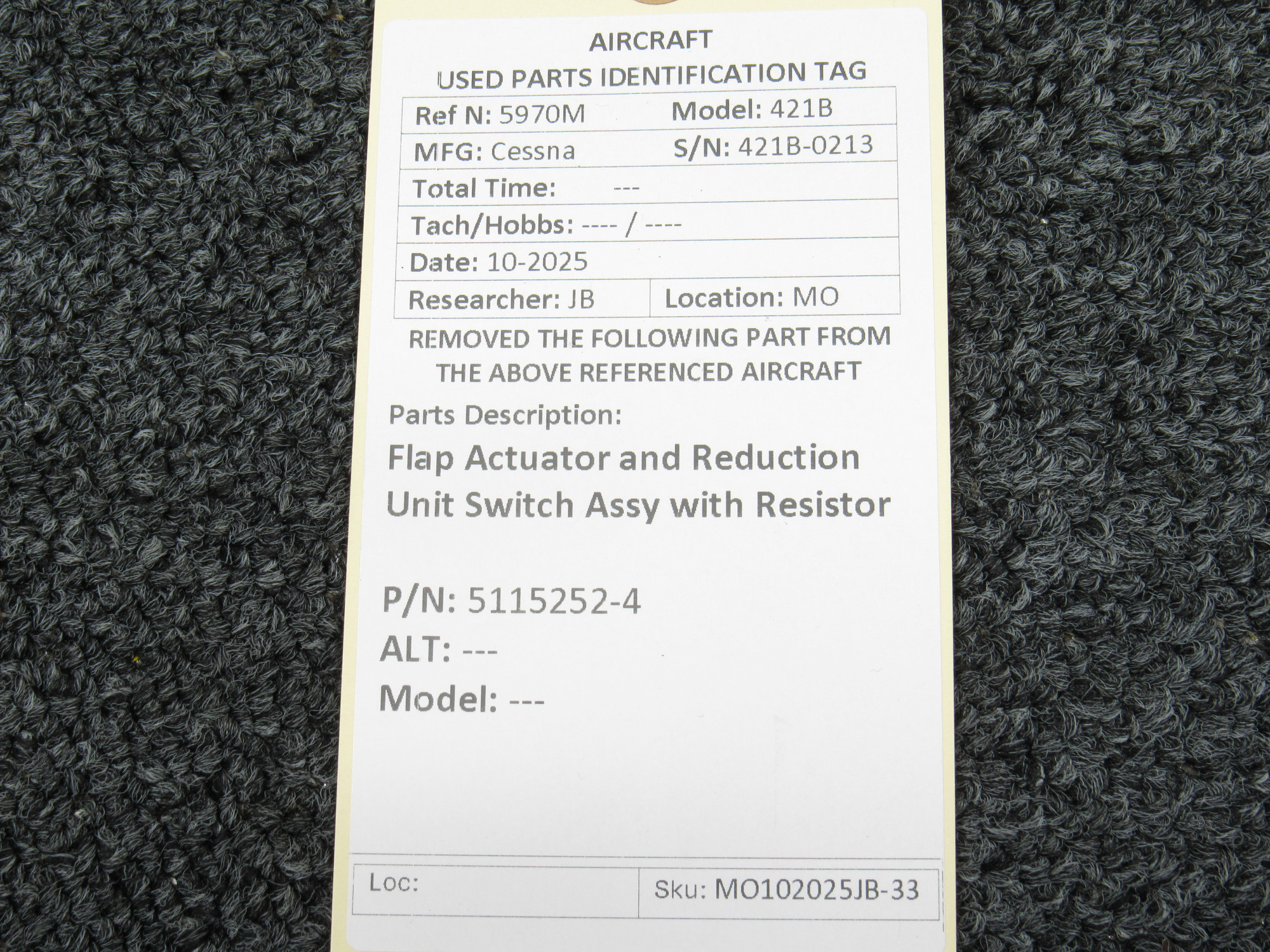 Unless specifically noted, most of our used airplane parts are sold in the condition they were removed, which means you should expect the usual signs of wear and tear.