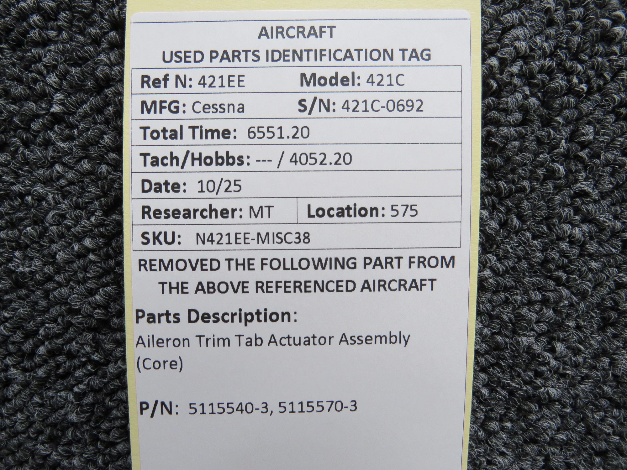 - Actuator Part Number: 5115540-3