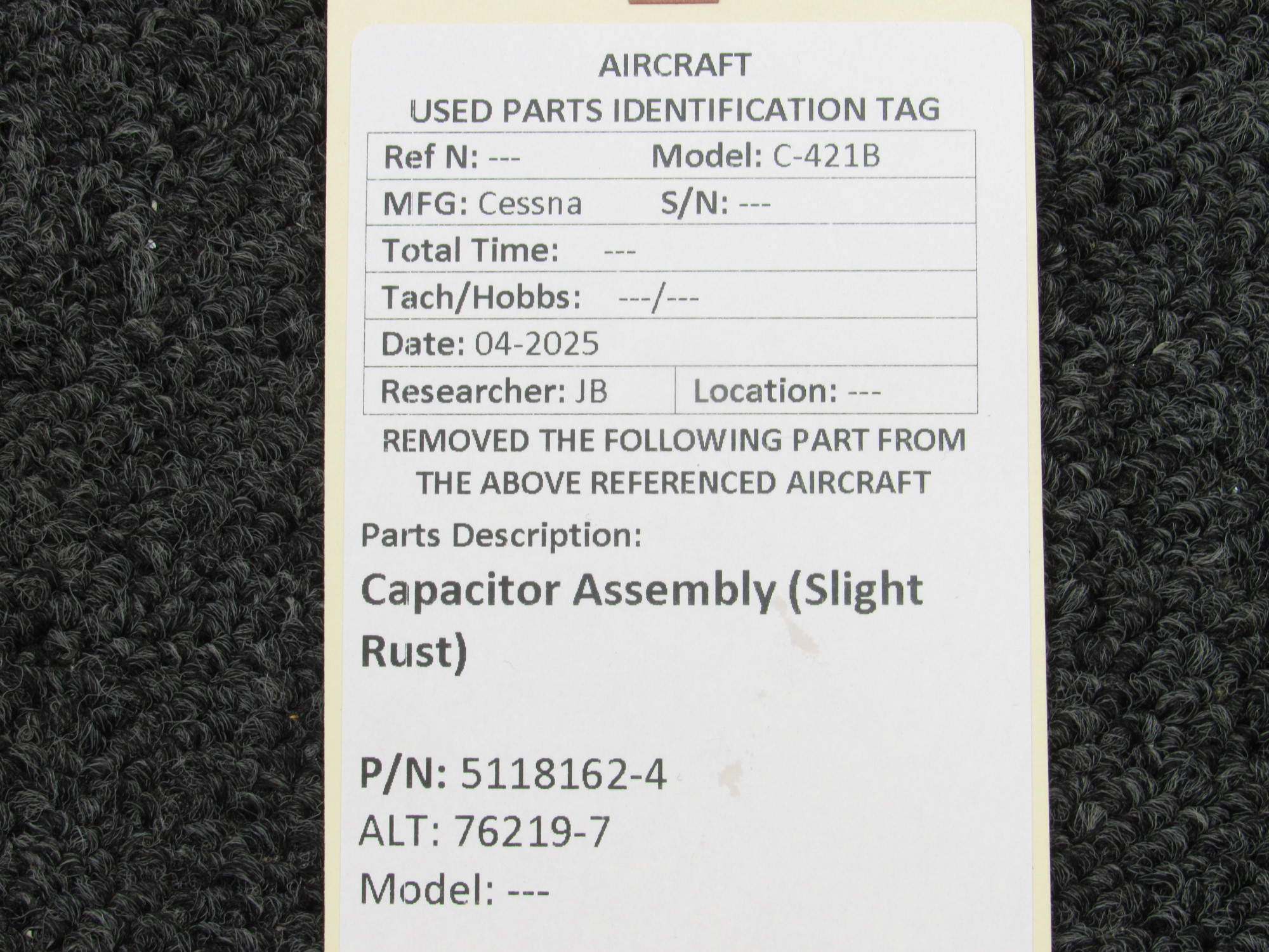 Unless specifically noted, most of our used airplane parts are sold in the condition they were removed, which means you should expect the usual signs of wear and tear.