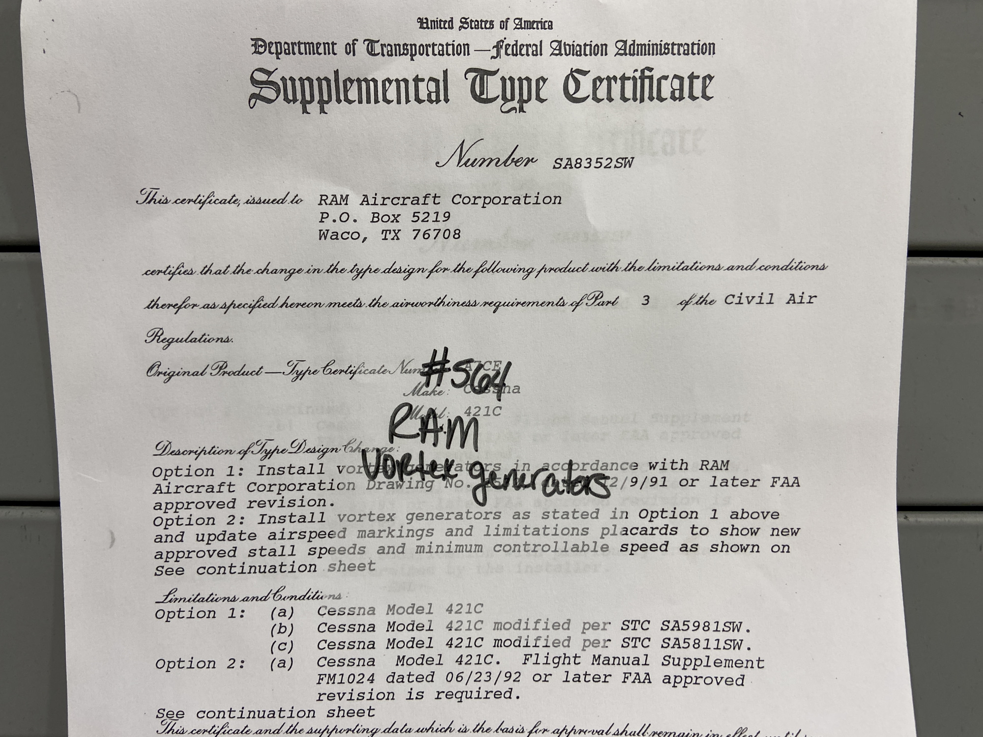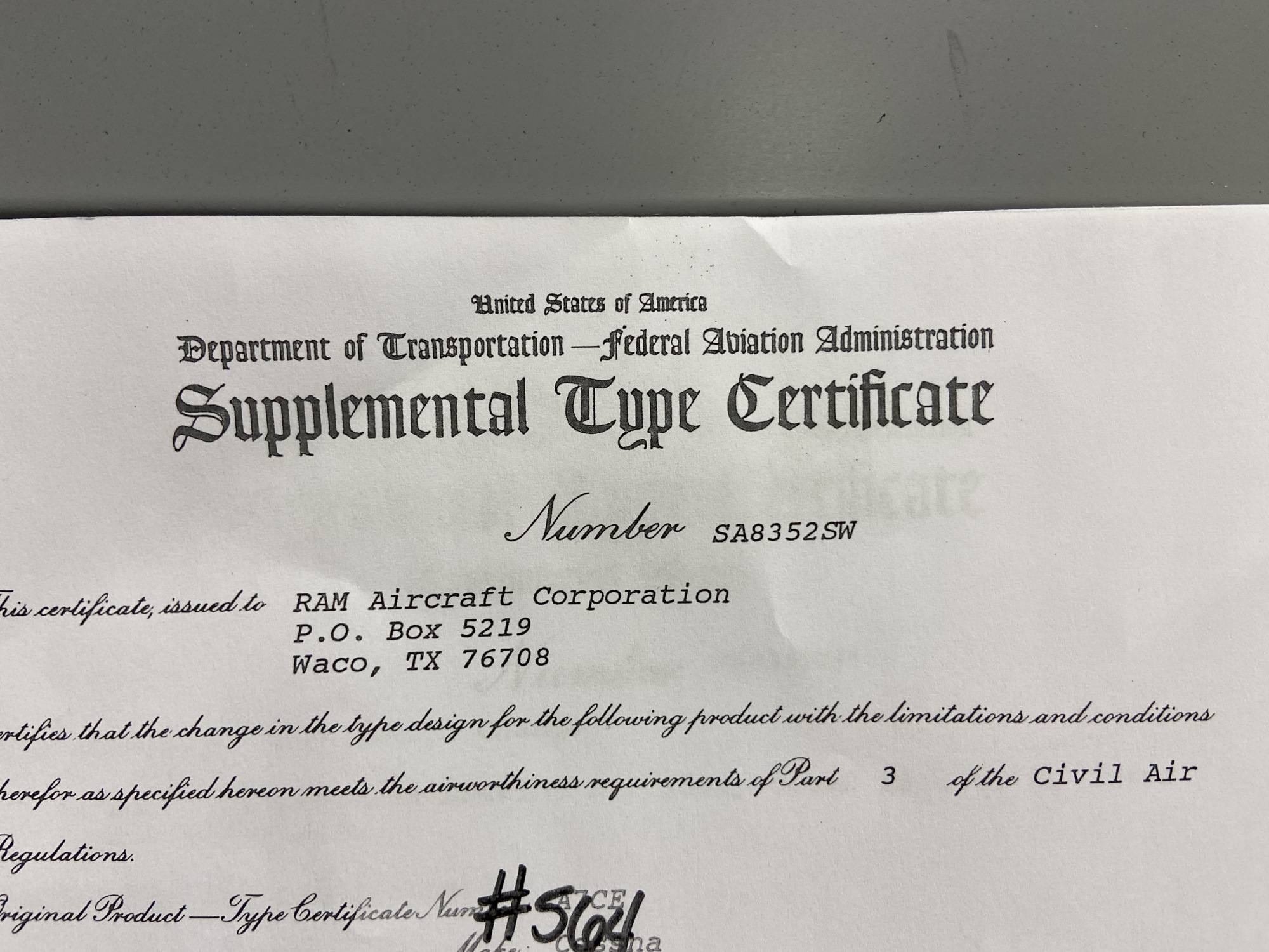 - STC Number: SA8352SW