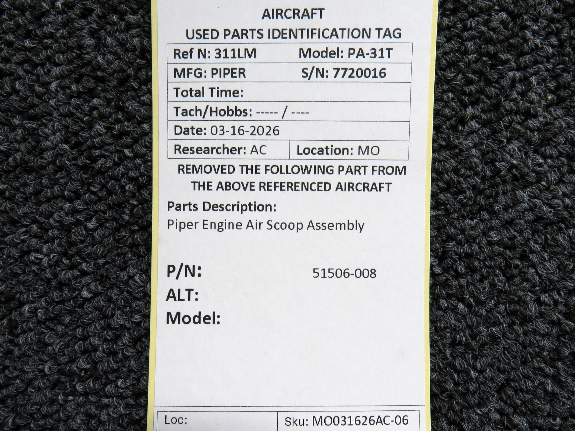 Unless specifically noted, most of our used airplane parts are sold in the condition they were removed, which means you should expect the usual signs of wear and tear.
