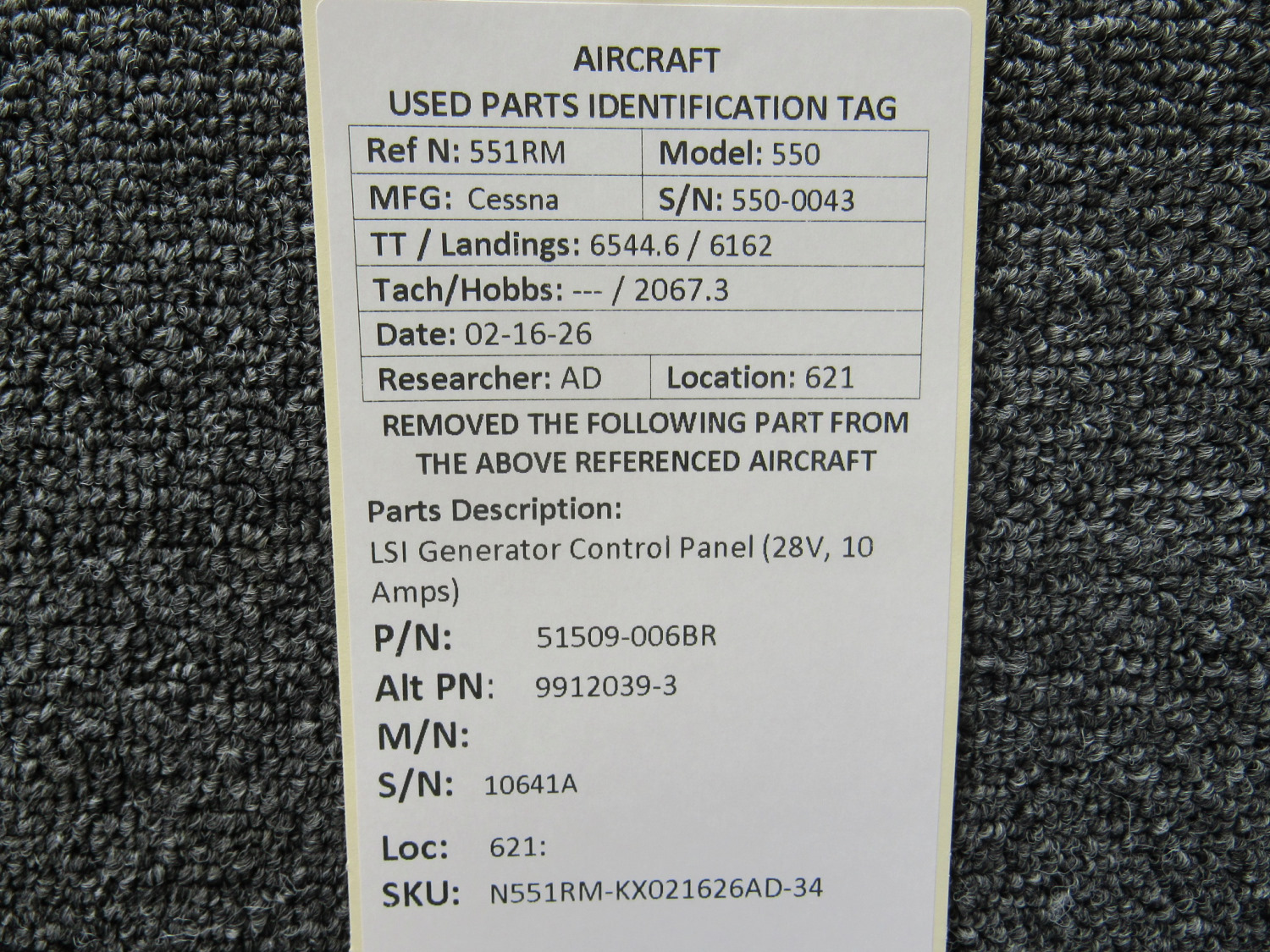 Unless specifically noted, most of our used airplane parts are sold in the condition they were removed, which means you should expect the usual signs of wear and tear.