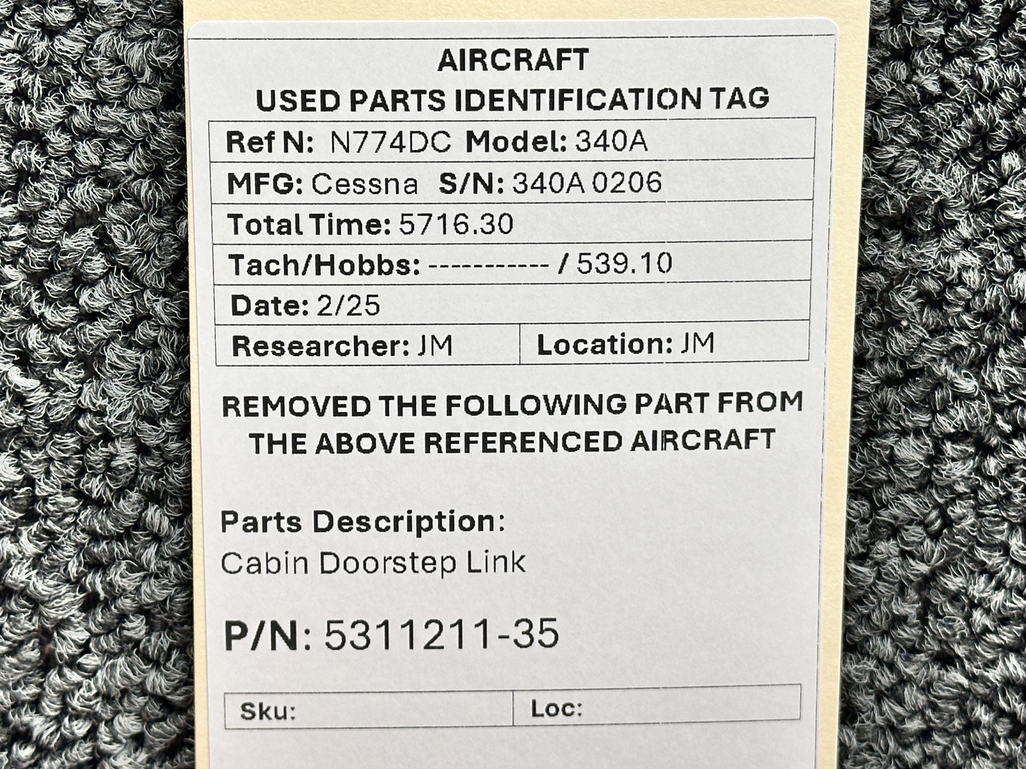 Unless specifically noted, most of our used airplane parts are sold in the condition they were removed, which means you should expect the usual signs of wear and tear.