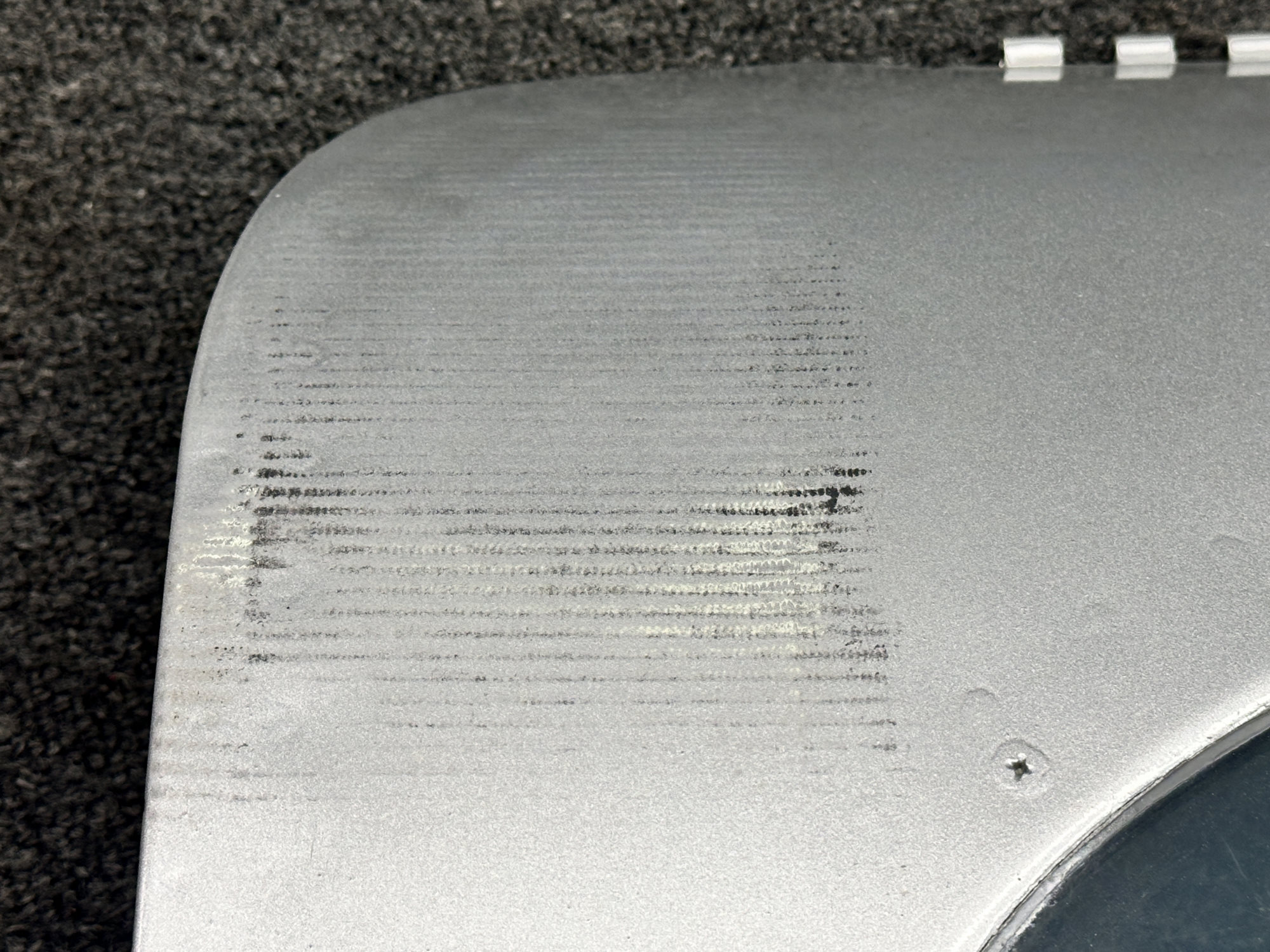 - Has a scrape on side edge, minor scratches on window and minor scuffing on front, see pictures for more detail