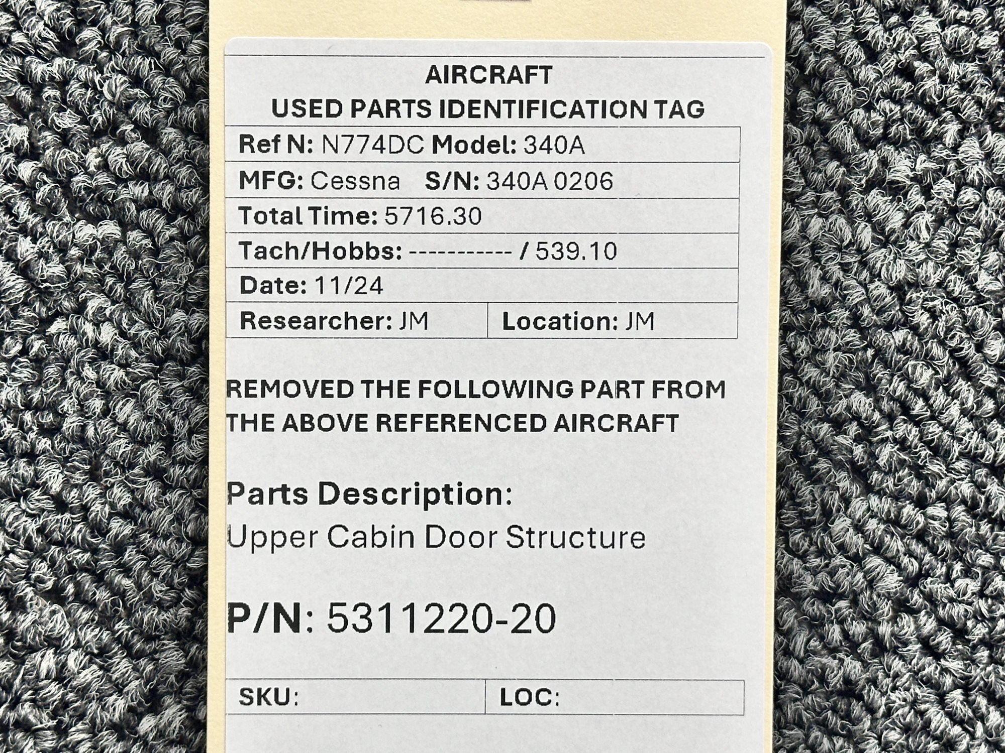 Unless specifically noted, most of our used airplane parts are sold in the condition they were removed, which means you should expect the usual signs of wear and tear.