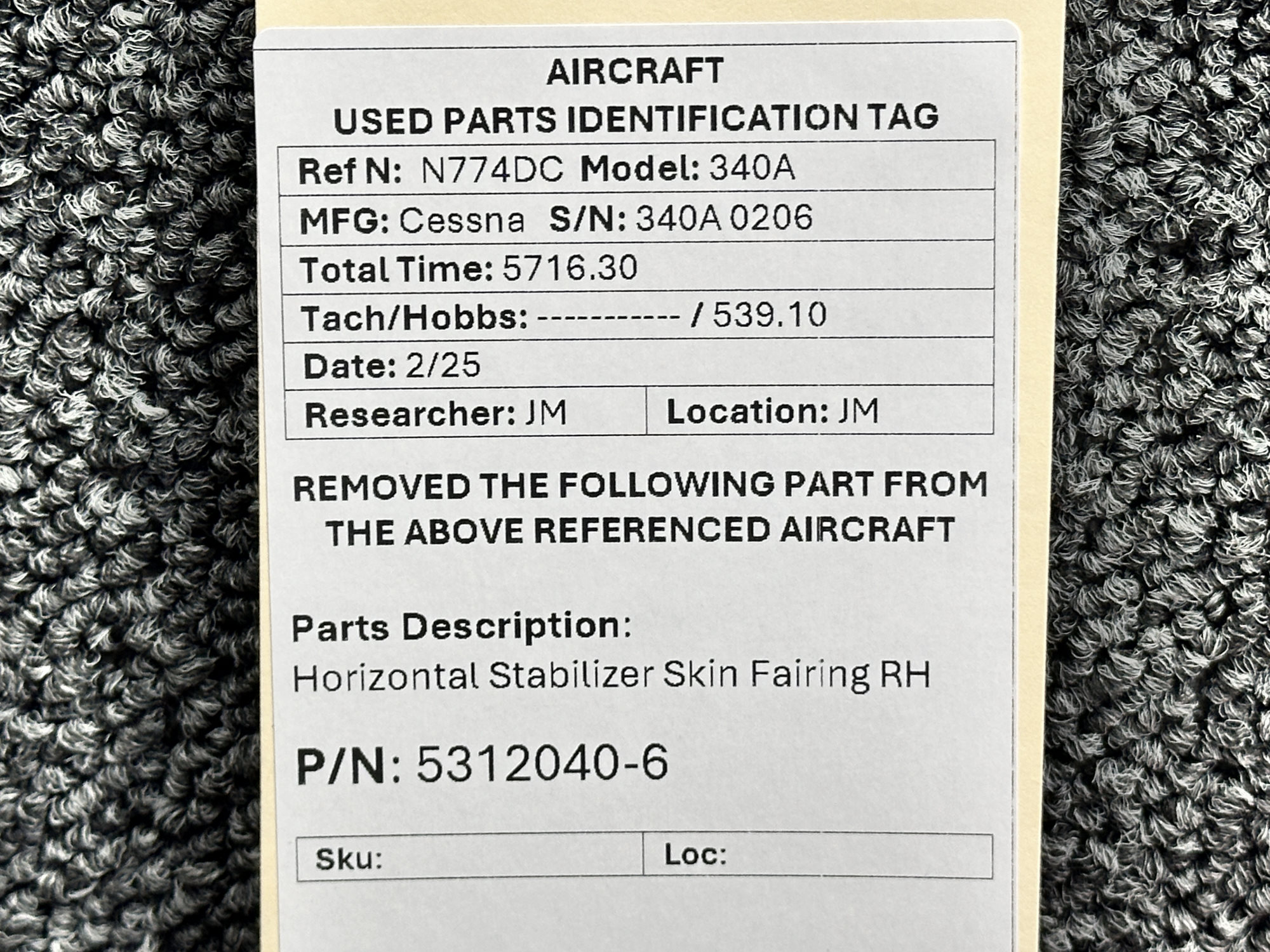 Unless specifically noted, most of our used airplane parts are sold in the condition they were removed, which means you should expect the usual signs of wear and tear.