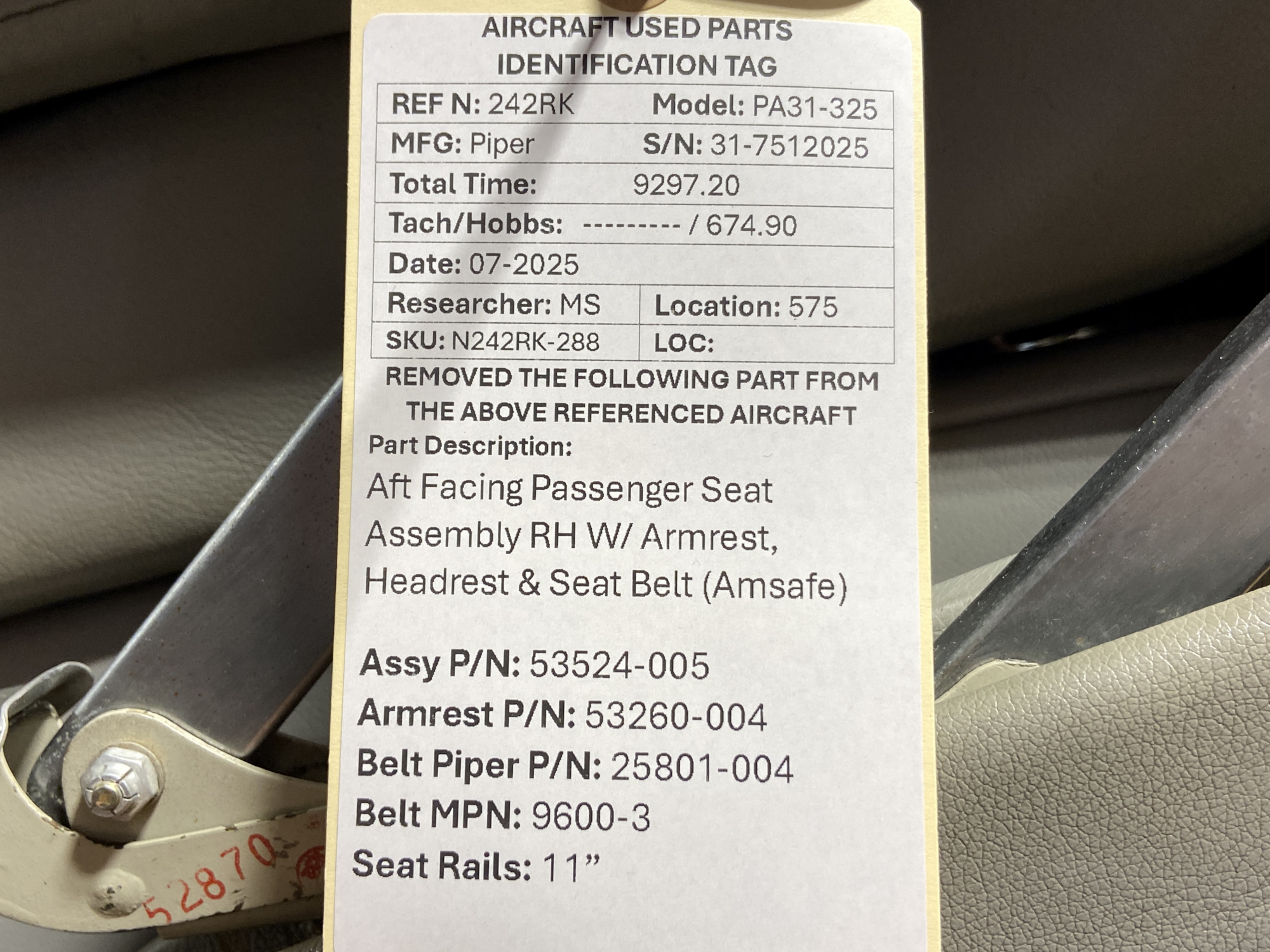 - AmSafe Seat Belt Part Number: 9600-3