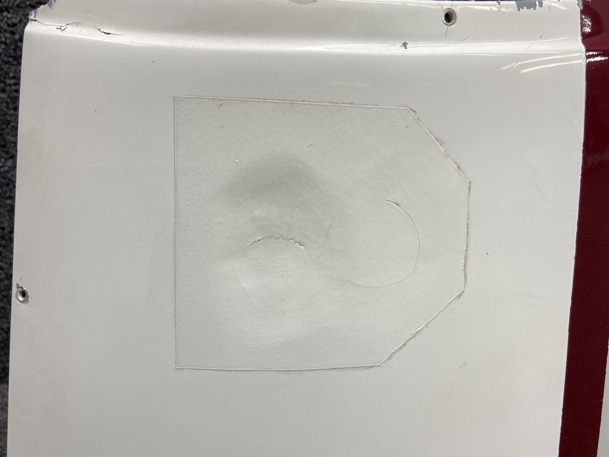 - Paint is cracked and has 2 repair patches