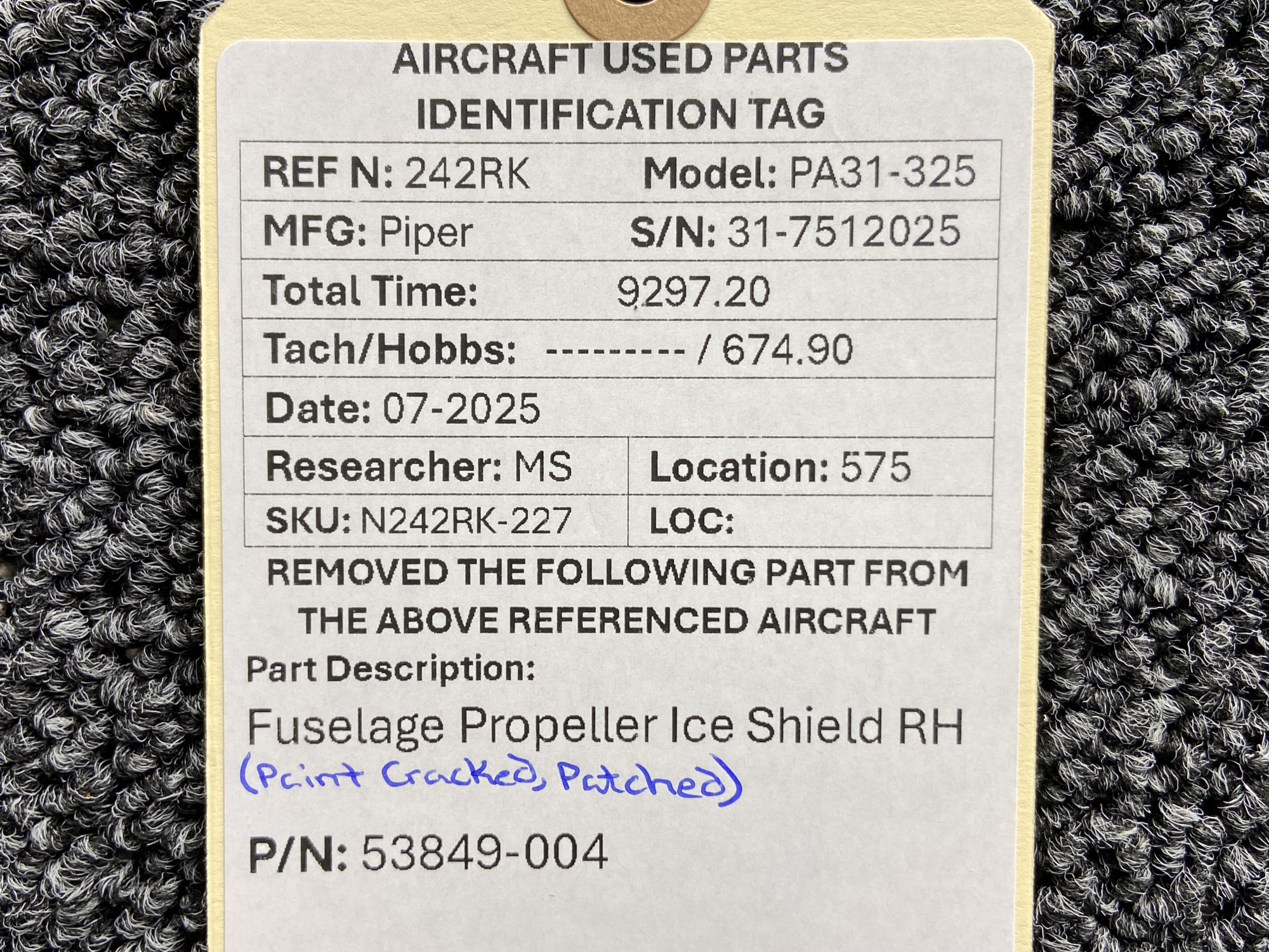 Unless specifically noted, most of our used airplane parts are sold in the condition they were removed, which means you should expect the usual signs of wear and tear.