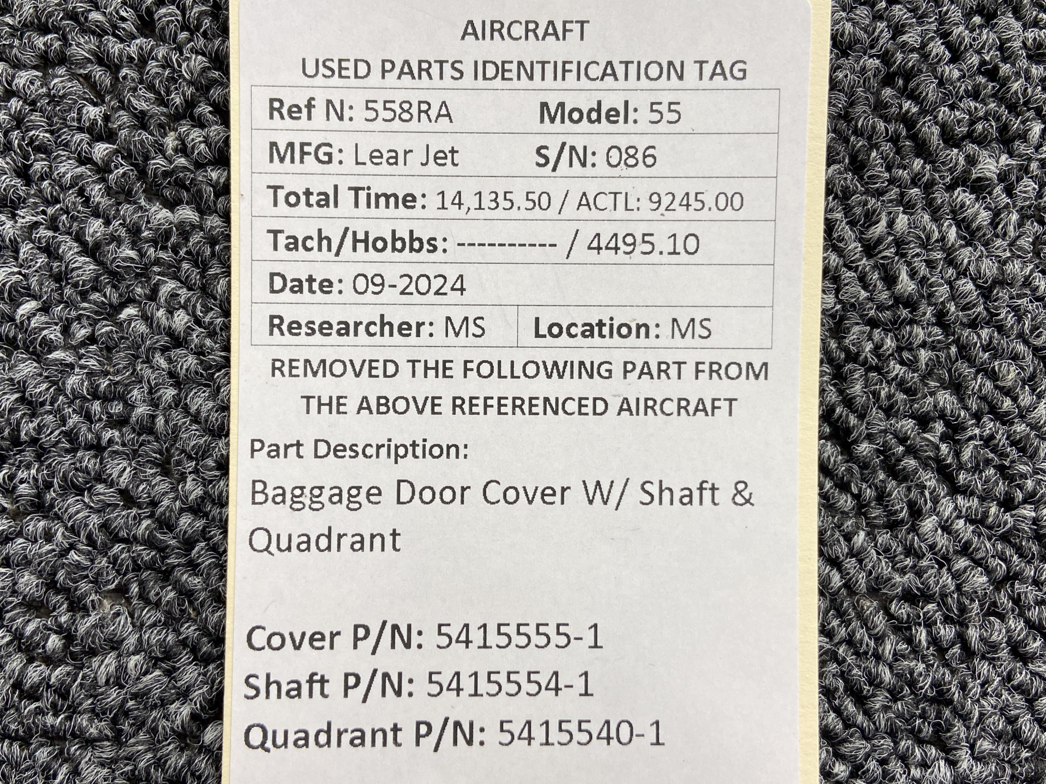 - Shaft Part Number: 5415554-1