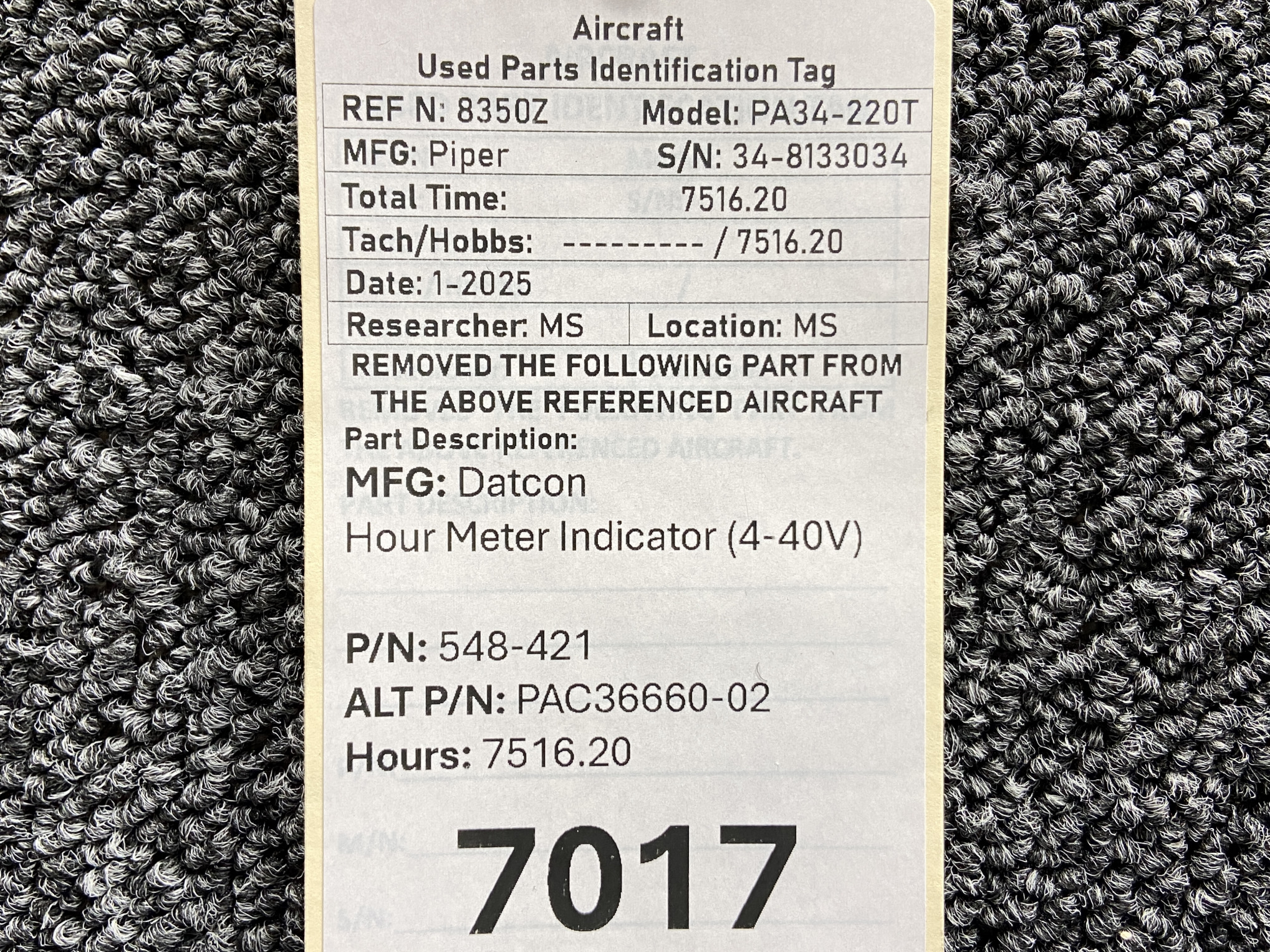- Hours: 7516.20