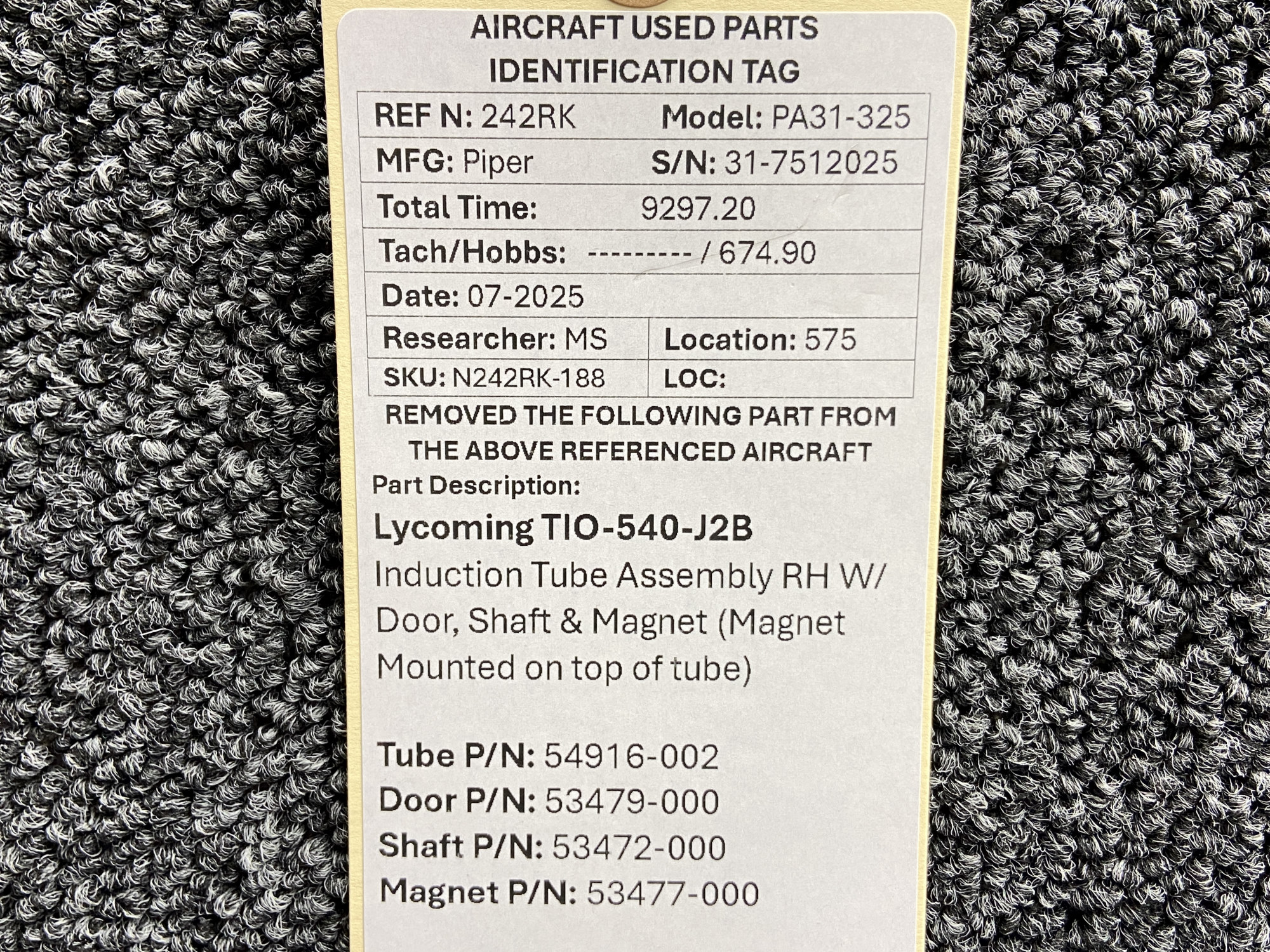 - Removed From: Lycoming TIO-540-J2B