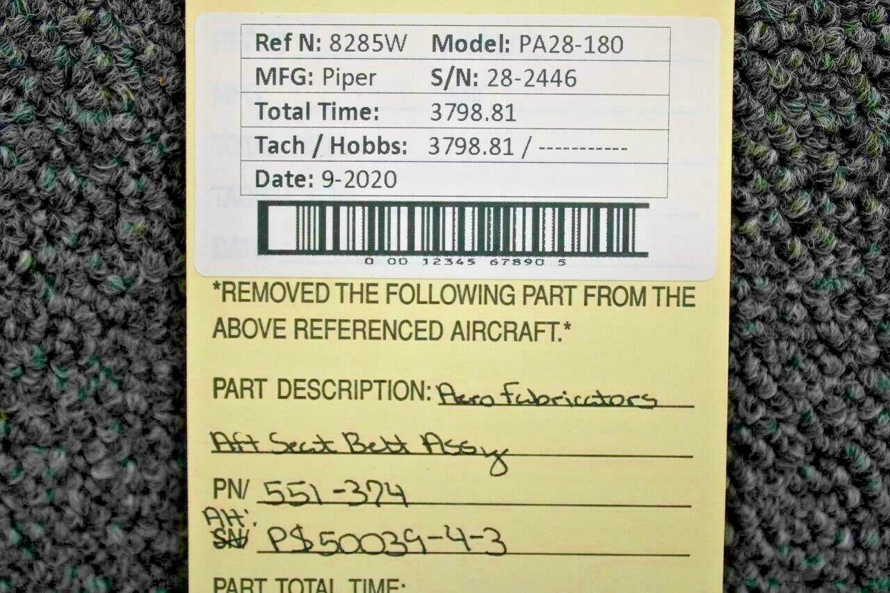 551-374 (Alt: PS50039-4-3) Piper PA28-180 Aero Fabricators Seat Belt Assy (Blue)