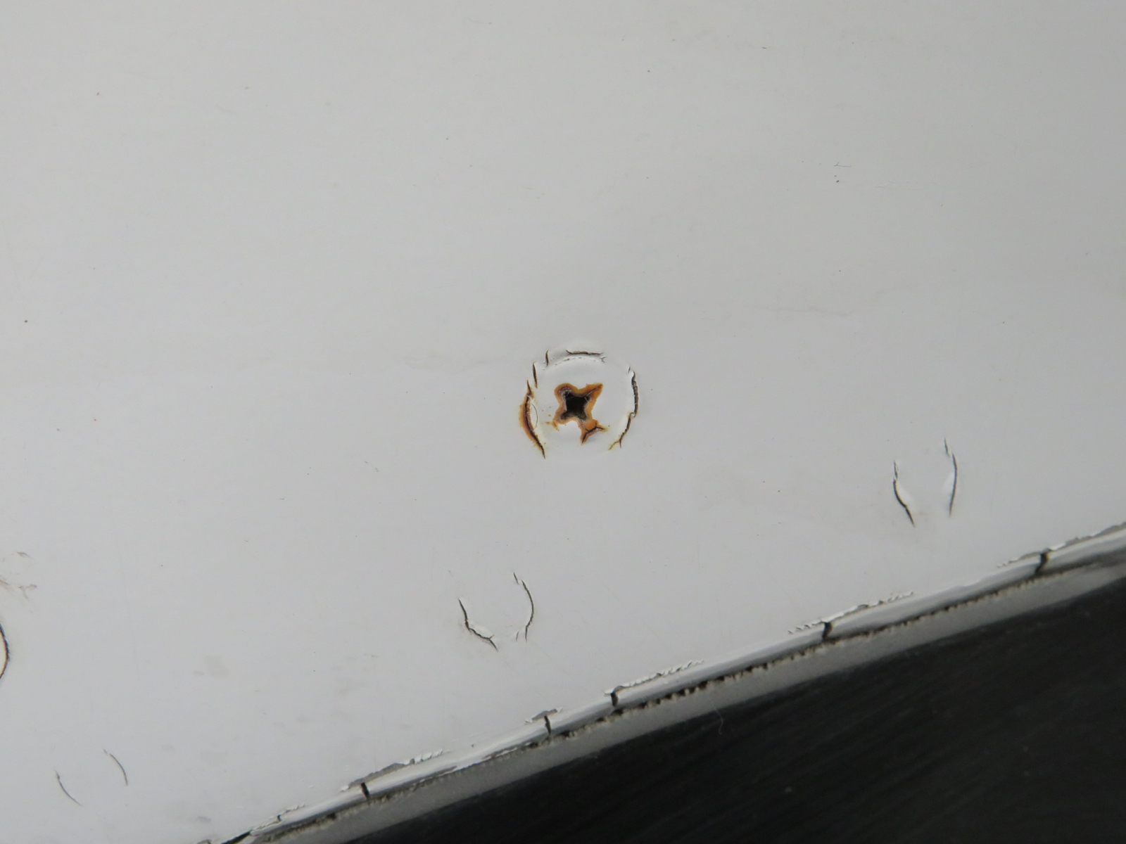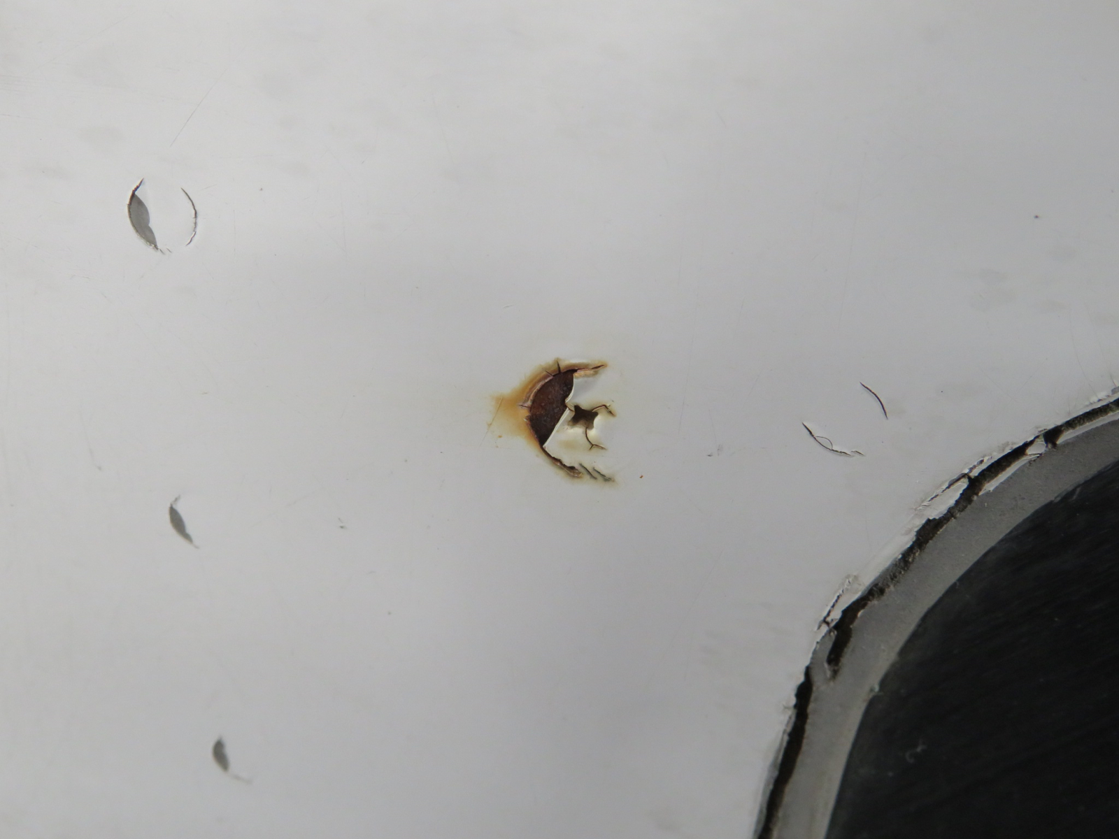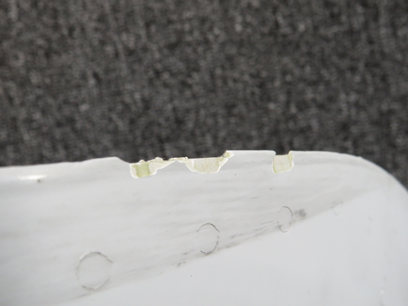 - Chips around outer, exterior edge