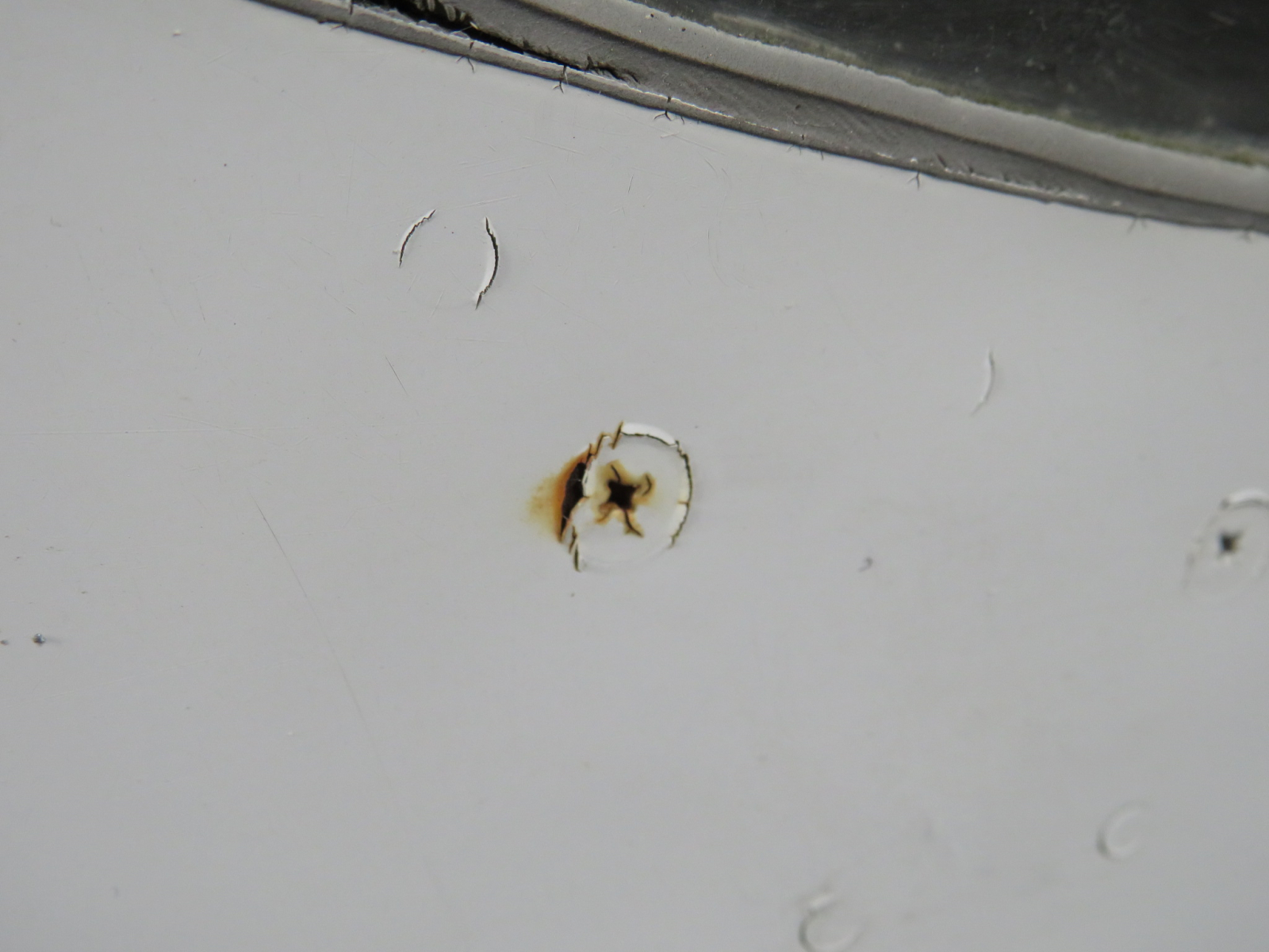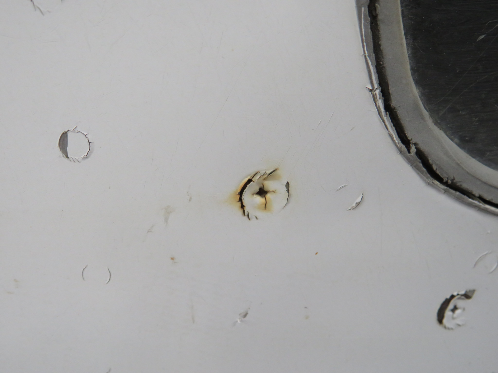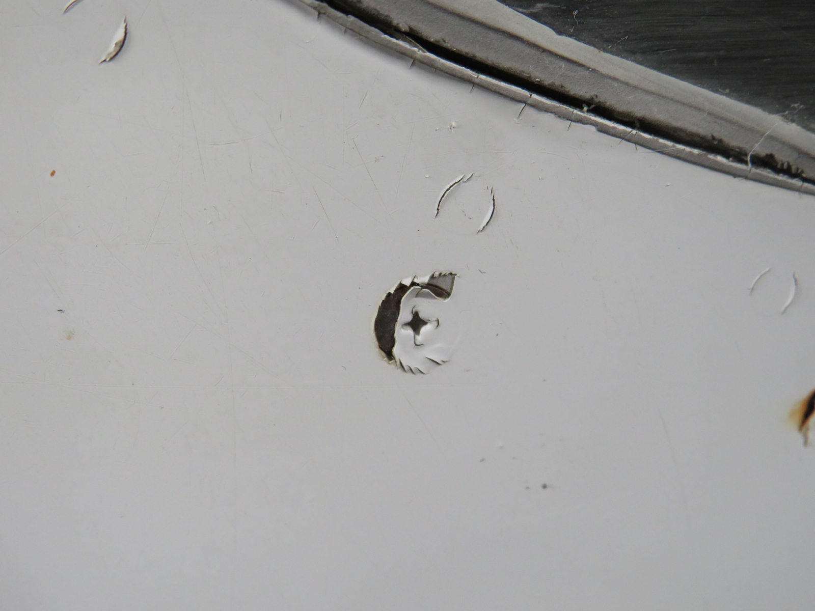 - Chips around outer, exterior edge