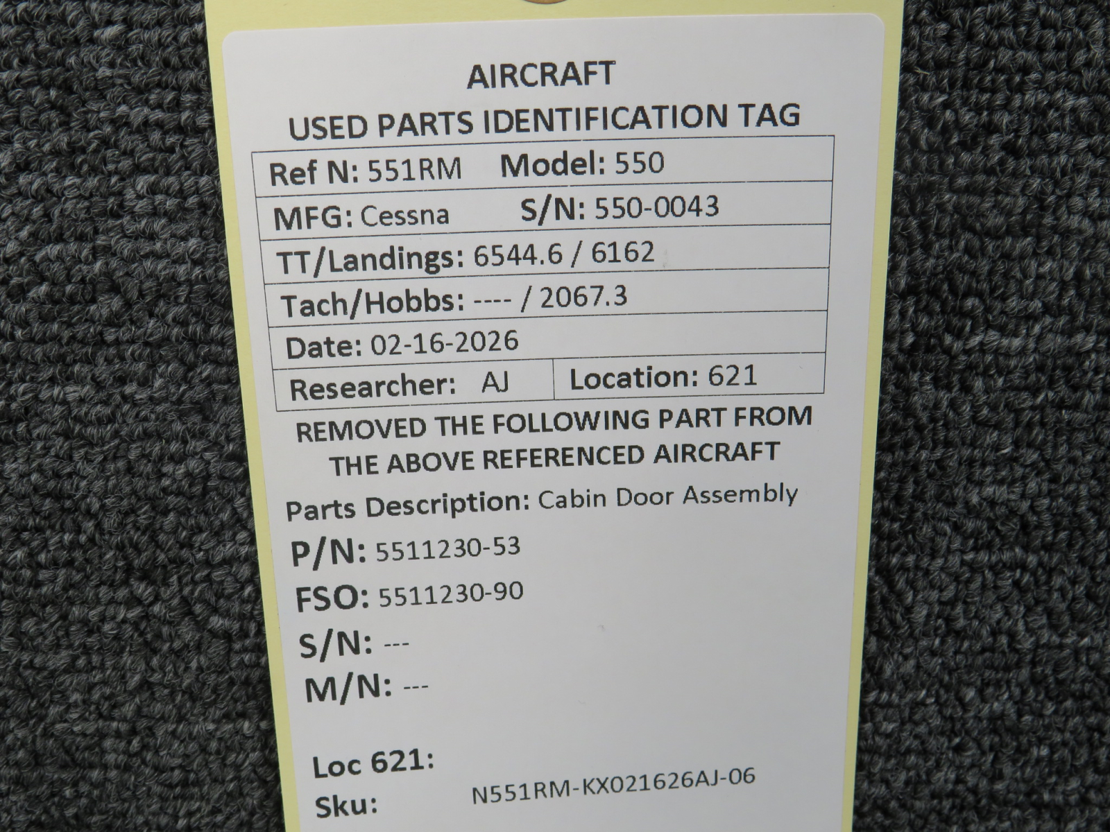 Unless specifically noted, most of our used airplane parts are sold in the condition they were removed, which means you should expect the usual signs of wear and tear.