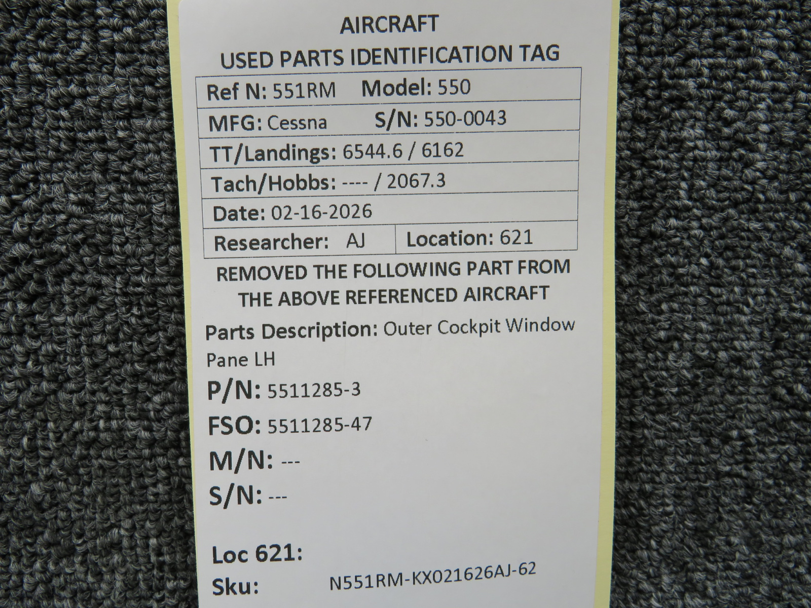 Unless specifically noted, most of our used airplane parts are sold in the condition they were removed, which means you should expect the usual signs of wear and tear.