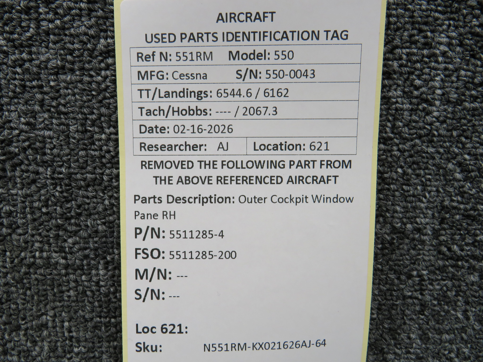 Unless specifically noted, most of our used airplane parts are sold in the condition they were removed, which means you should expect the usual signs of wear and tear.