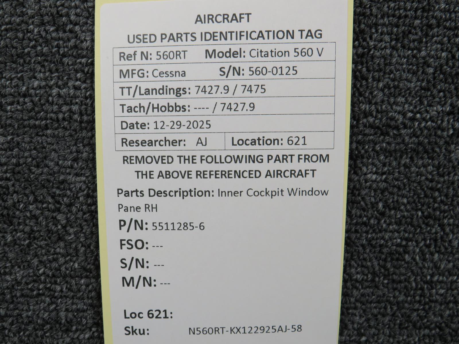 Unless specifically noted, most of our used airplane parts are sold in the condition they were removed, which means you should expect the usual signs of wear and tear.