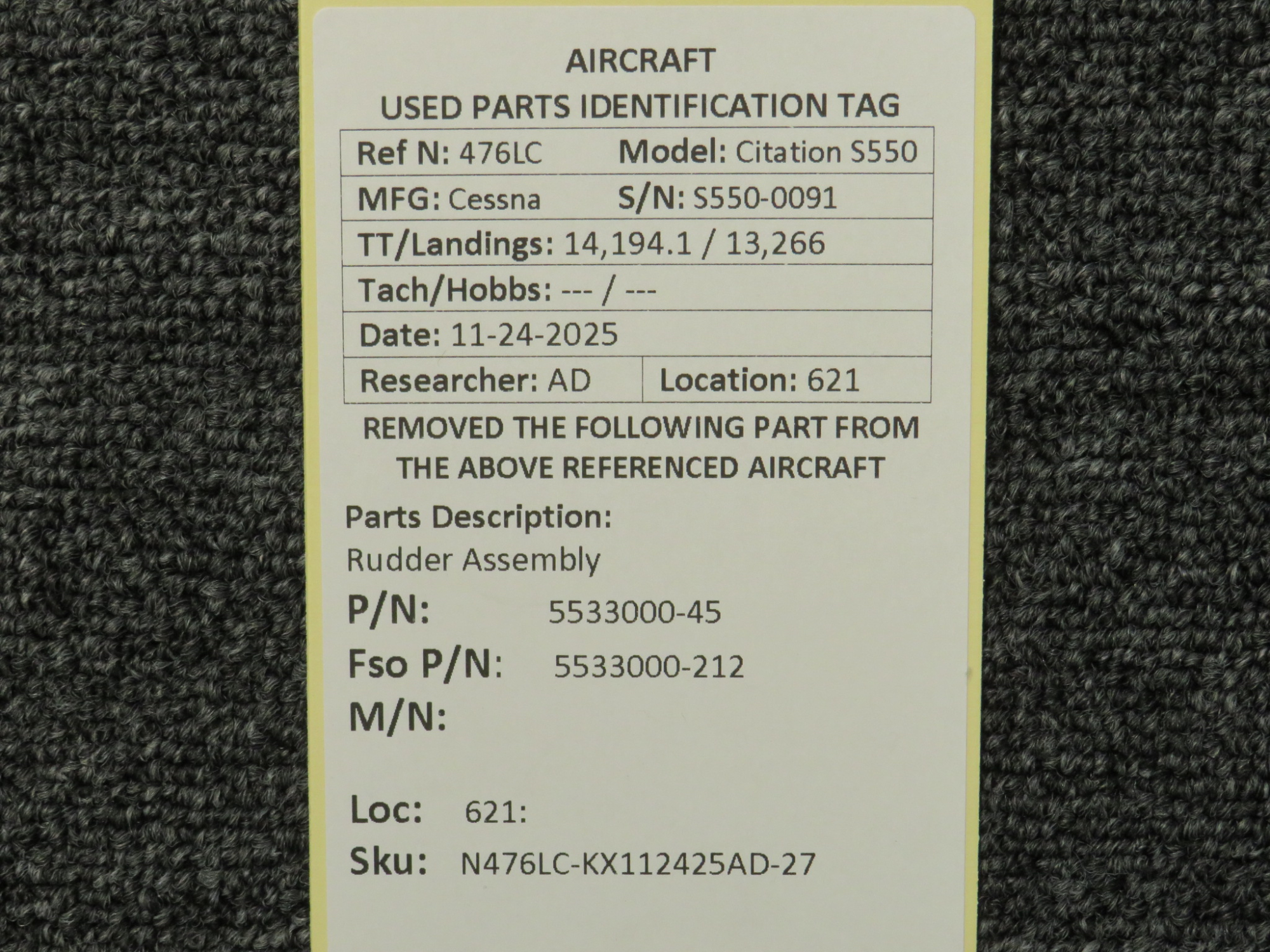 Every part is carefully inspected throughout our process and several times before it goes online. Most items are sold as-removed, just as they came off the aircraft. These parts are not functionally tested. What we do provide is clear photos, full traceability when available, pricing that reflects the as-removed condition, and a no-nonsense 90-day return window.