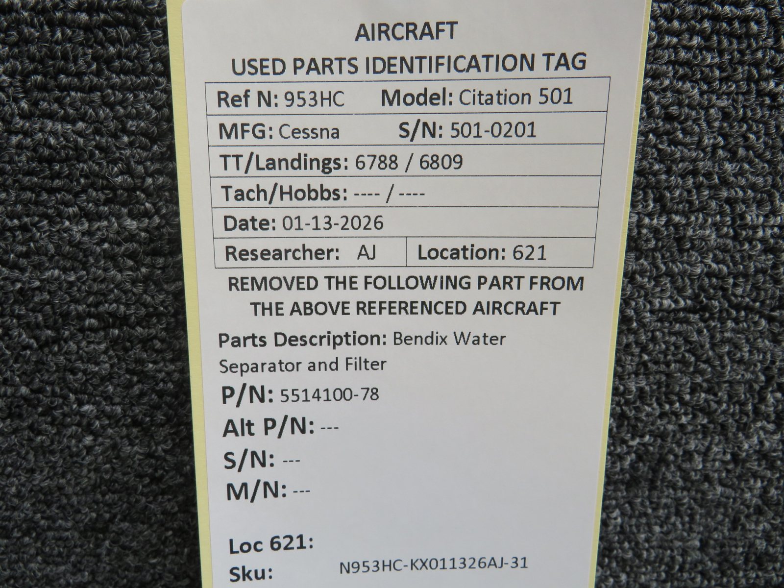 Unless specifically noted, most of our used airplane parts are sold in the condition they were removed, which means you should expect the usual signs of wear and tear.