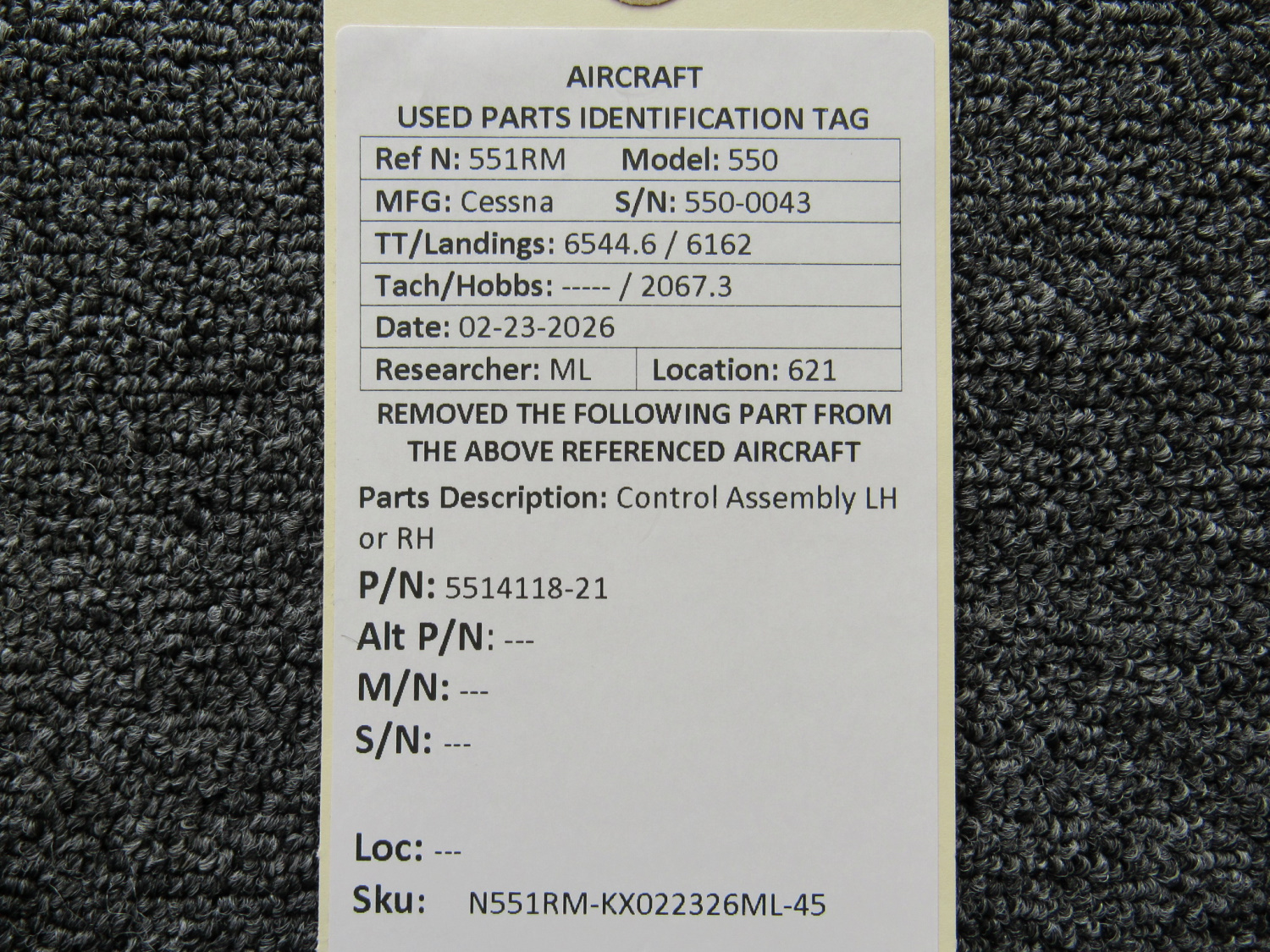 Every part is carefully inspected throughout our process and several times before it goes online. Most items are sold as-removed, just as they came off the aircraft. These parts are not functionally tested. What we do provide is clear photos, full traceability when available, pricing that reflects the as-removed condition, and a no-nonsense 90-day return window.