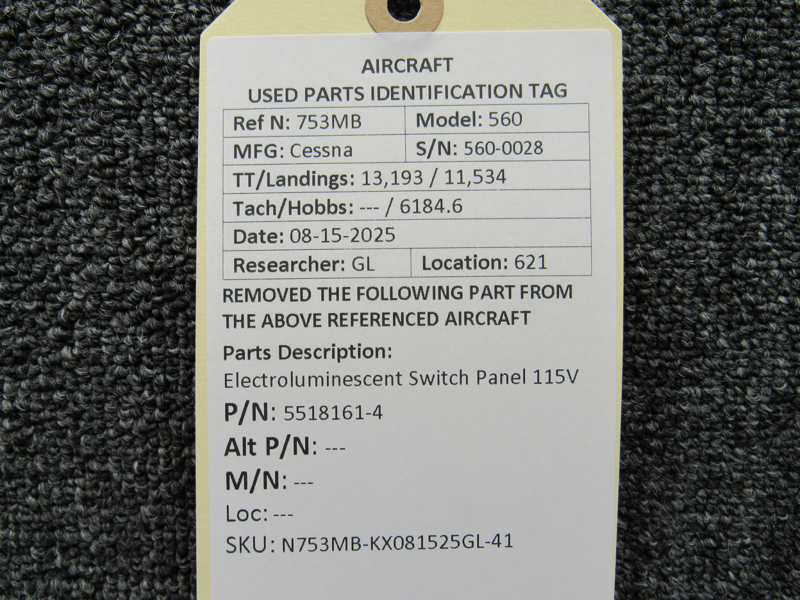 Unless specifically noted, most of our used airplane parts are sold in the condition they were removed, which means you should expect the usual signs of wear and tear.