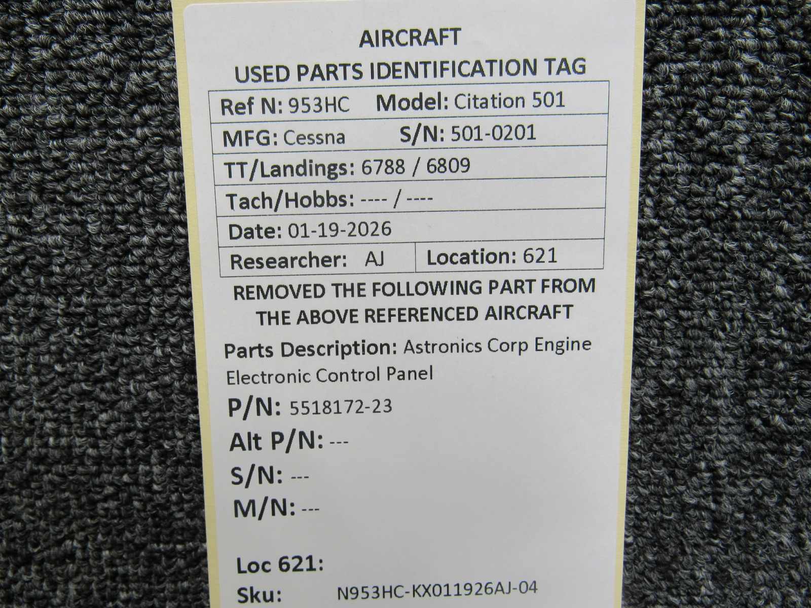 Unless specifically noted, most of our used airplane parts are sold in the condition they were removed, which means you should expect the usual signs of wear and tear.