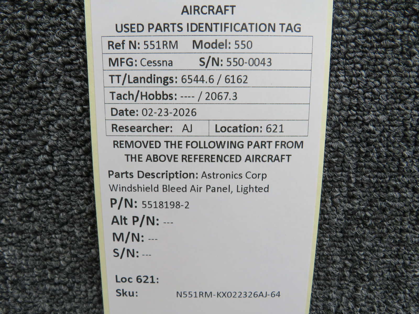 Every part is carefully inspected throughout our process and several times before it goes online. Most items are sold as-removed, just as they came off the aircraft. These parts are not functionally tested. What we do provide is clear photos, full traceability when available, pricing that reflects the as-removed condition, and a no-nonsense 90-day return window.