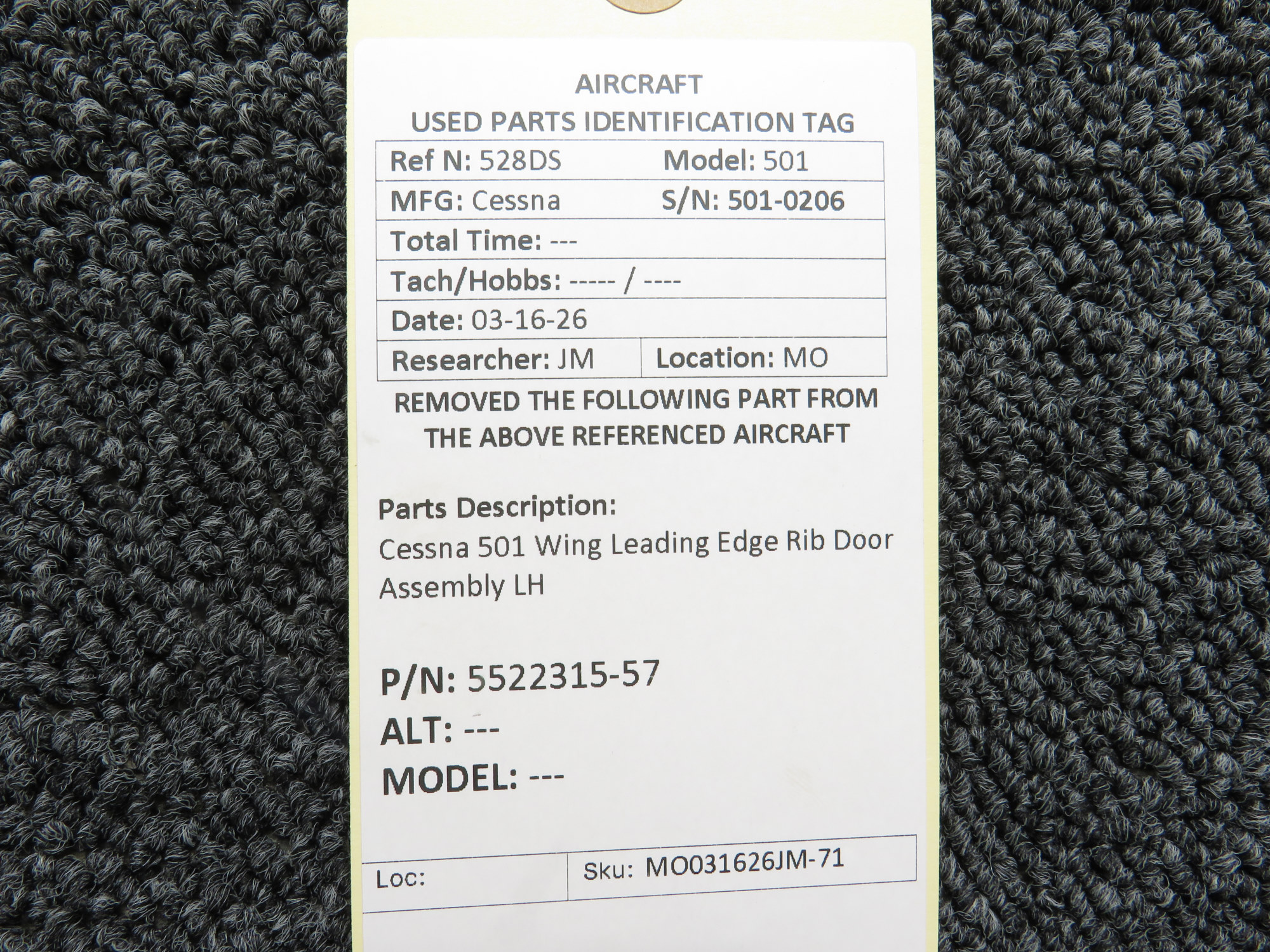 - Door Part Number: 5522315-60 (Removed from Cessna 501, N528DS, Serial Number: 501-0206)