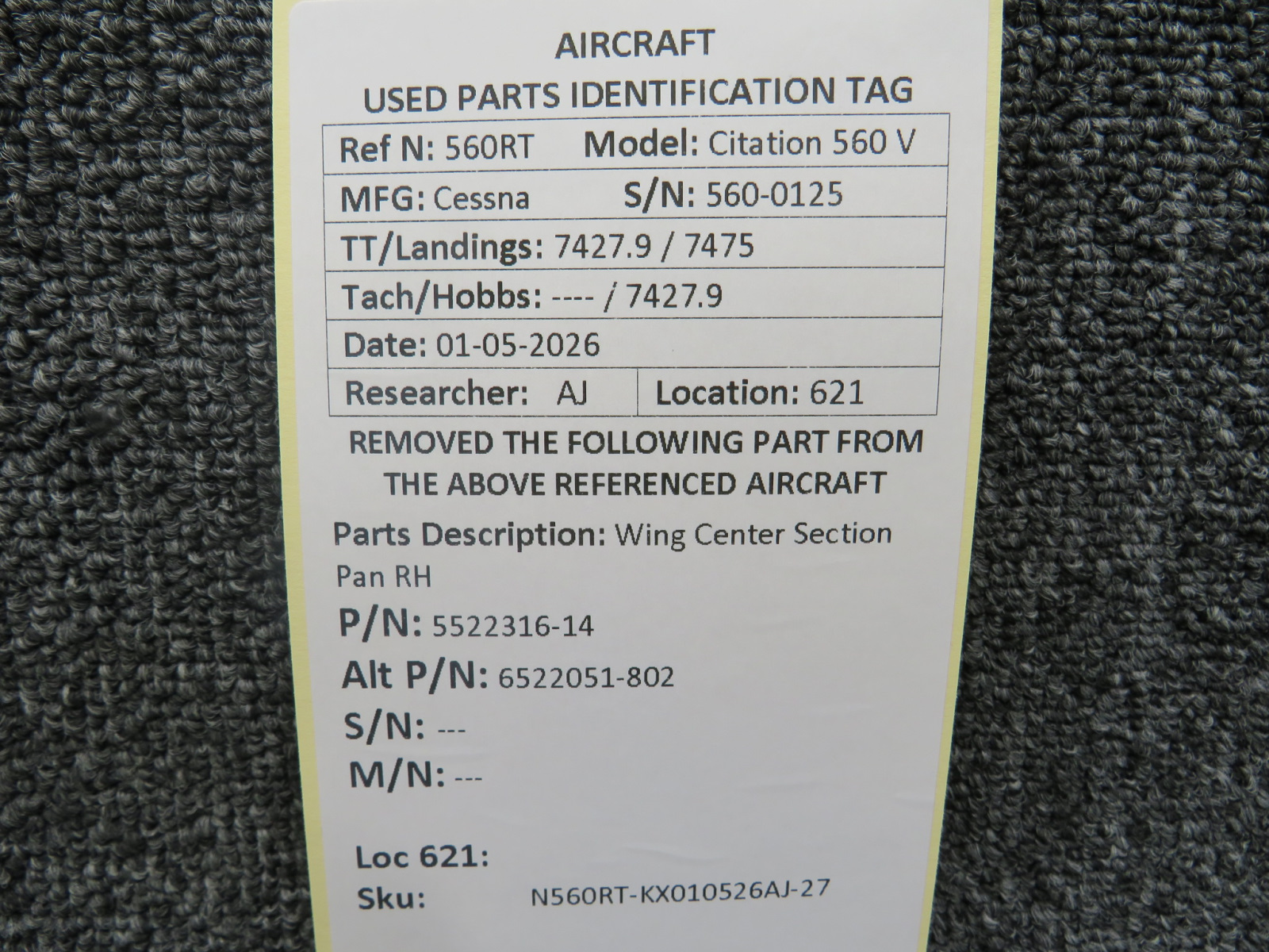 Unless specifically noted, most of our used airplane parts are sold in the condition they were removed, which means you should expect the usual signs of wear and tear.