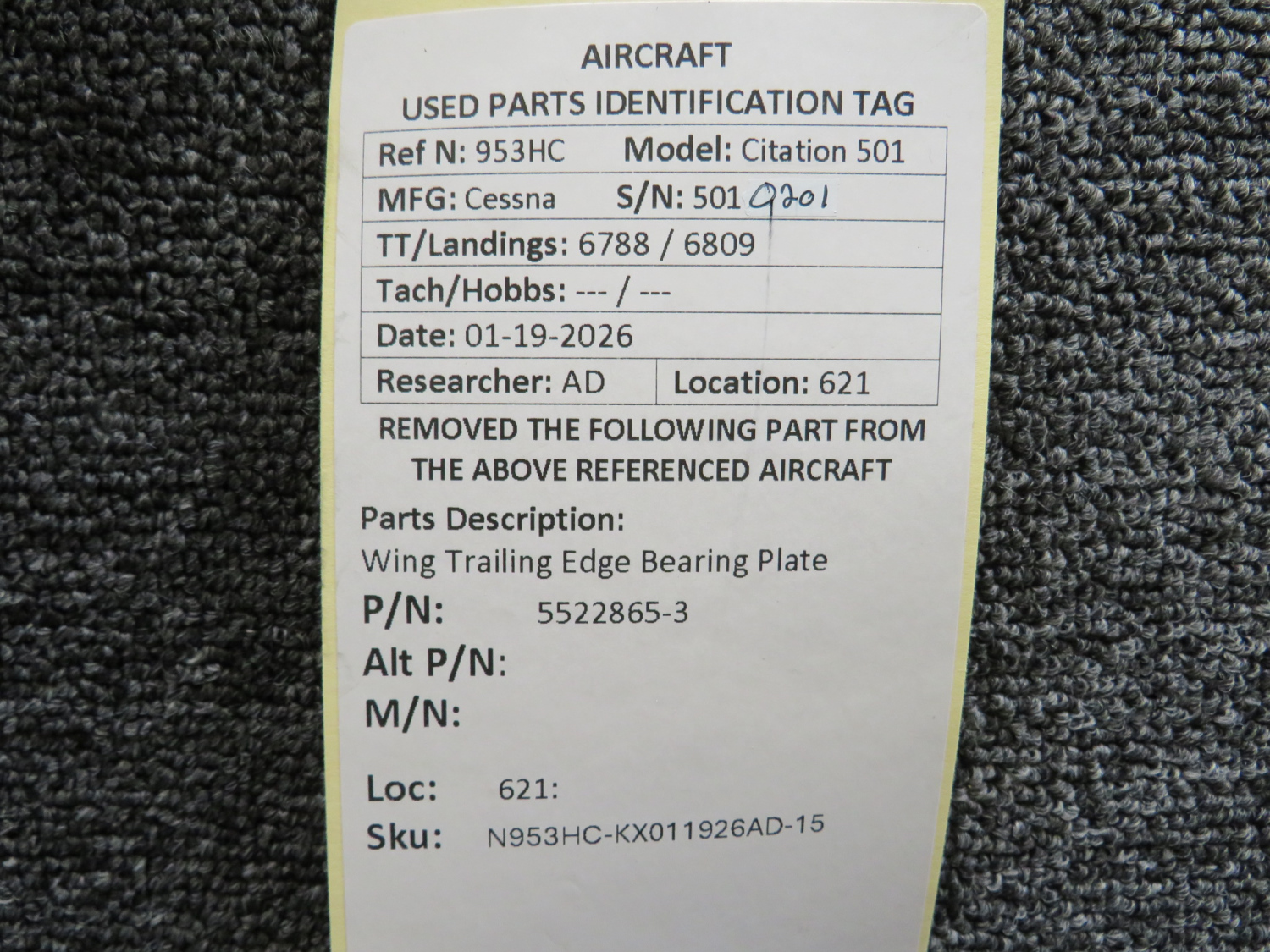 Unless specifically noted, most of our used airplane parts are sold in the condition they were removed, which means you should expect the usual signs of wear and tear.