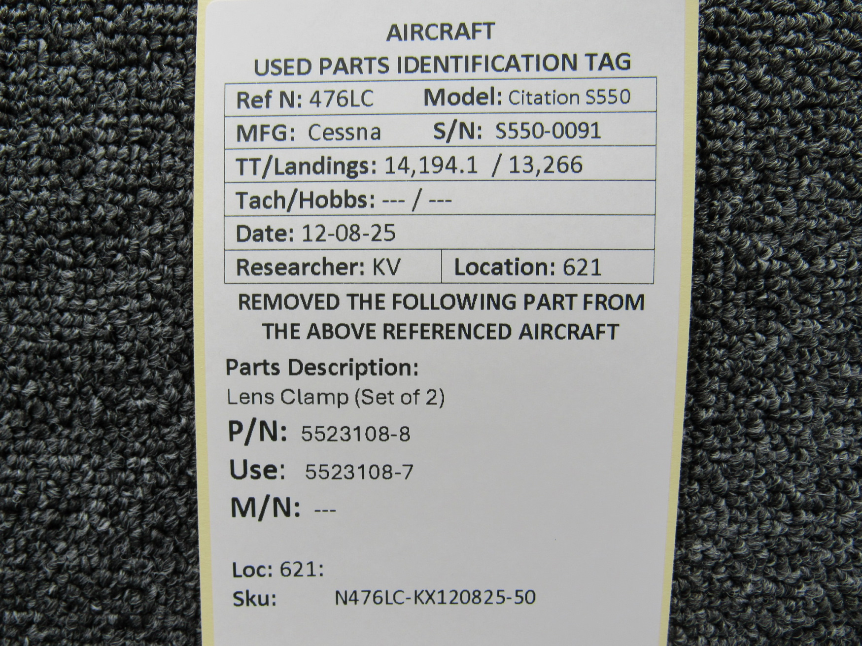 Unless specifically noted, most of our used airplane parts are sold in the condition they were removed, which means you should expect the usual signs of wear and tear.