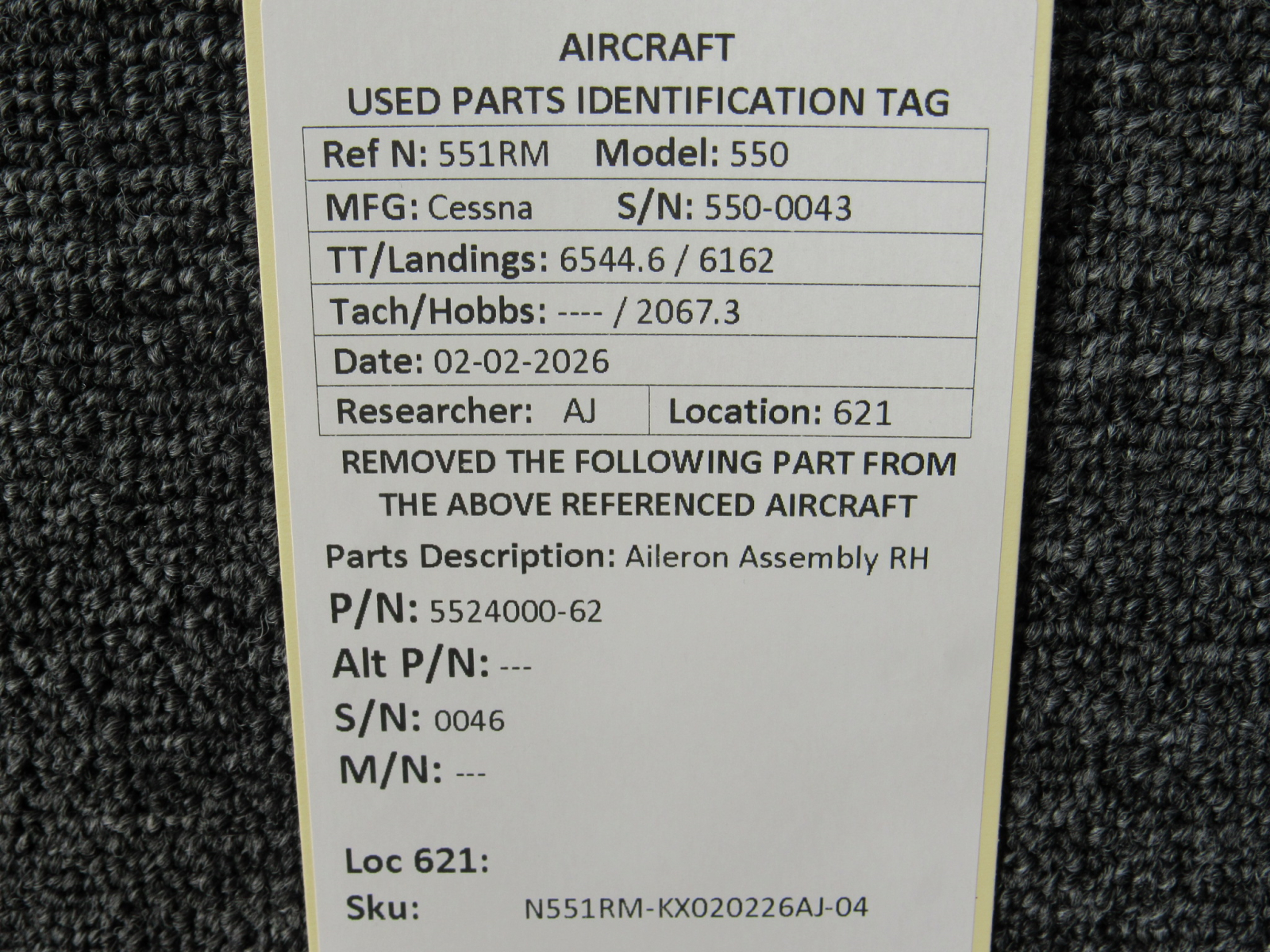 Unless specifically noted, most of our used airplane parts are sold in the condition they were removed, which means you should expect the usual signs of wear and tear.