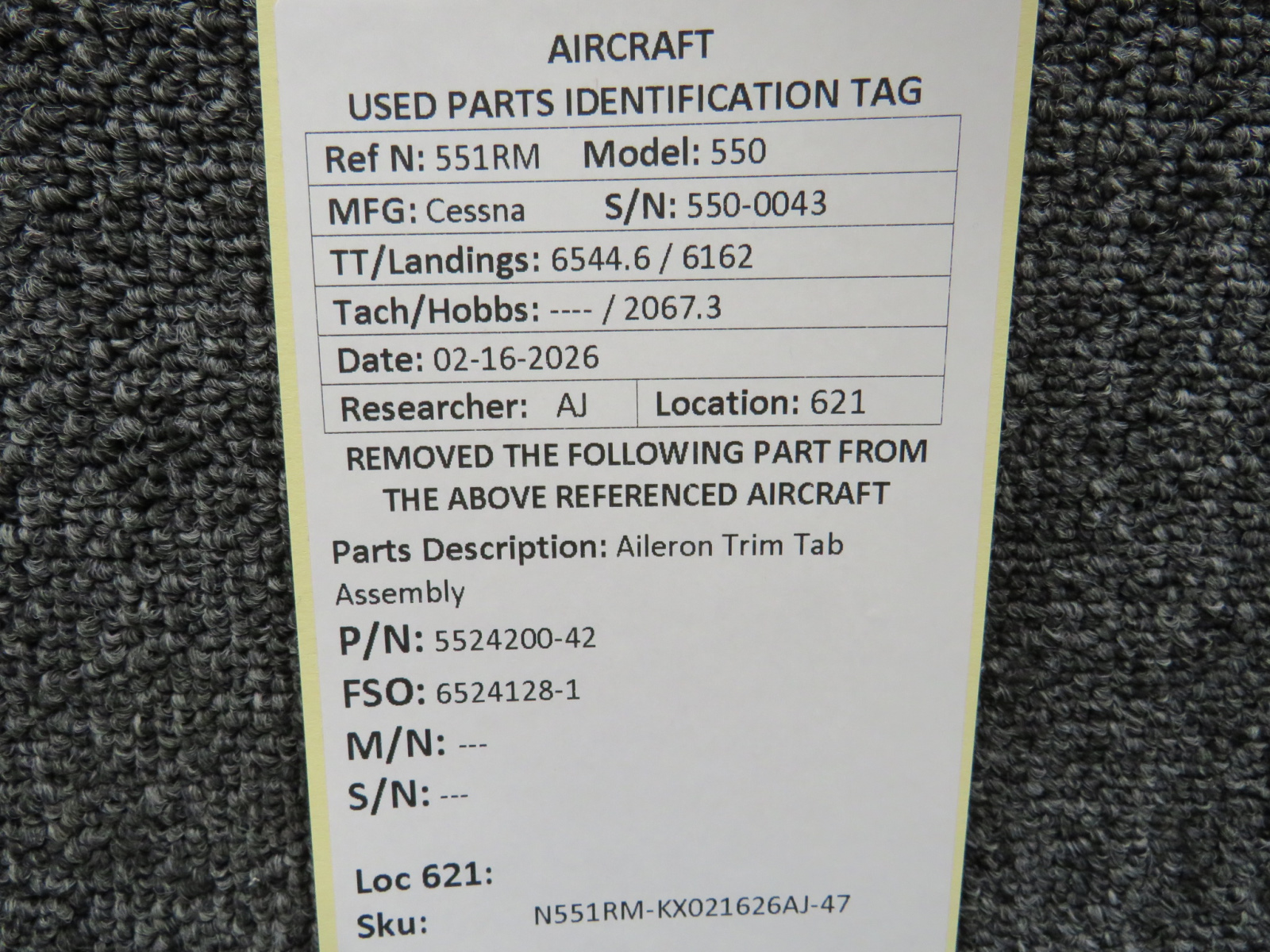 Unless specifically noted, most of our used airplane parts are sold in the condition they were removed, which means you should expect the usual signs of wear and tear.