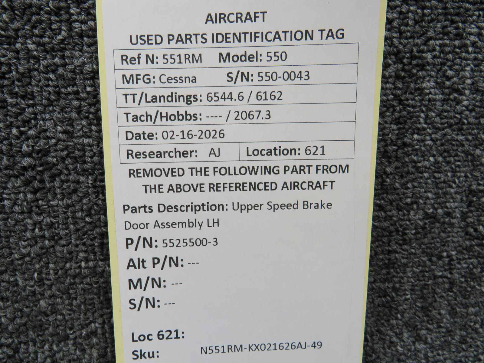 Unless specifically noted, most of our used airplane parts are sold in the condition they were removed, which means you should expect the usual signs of wear and tear.