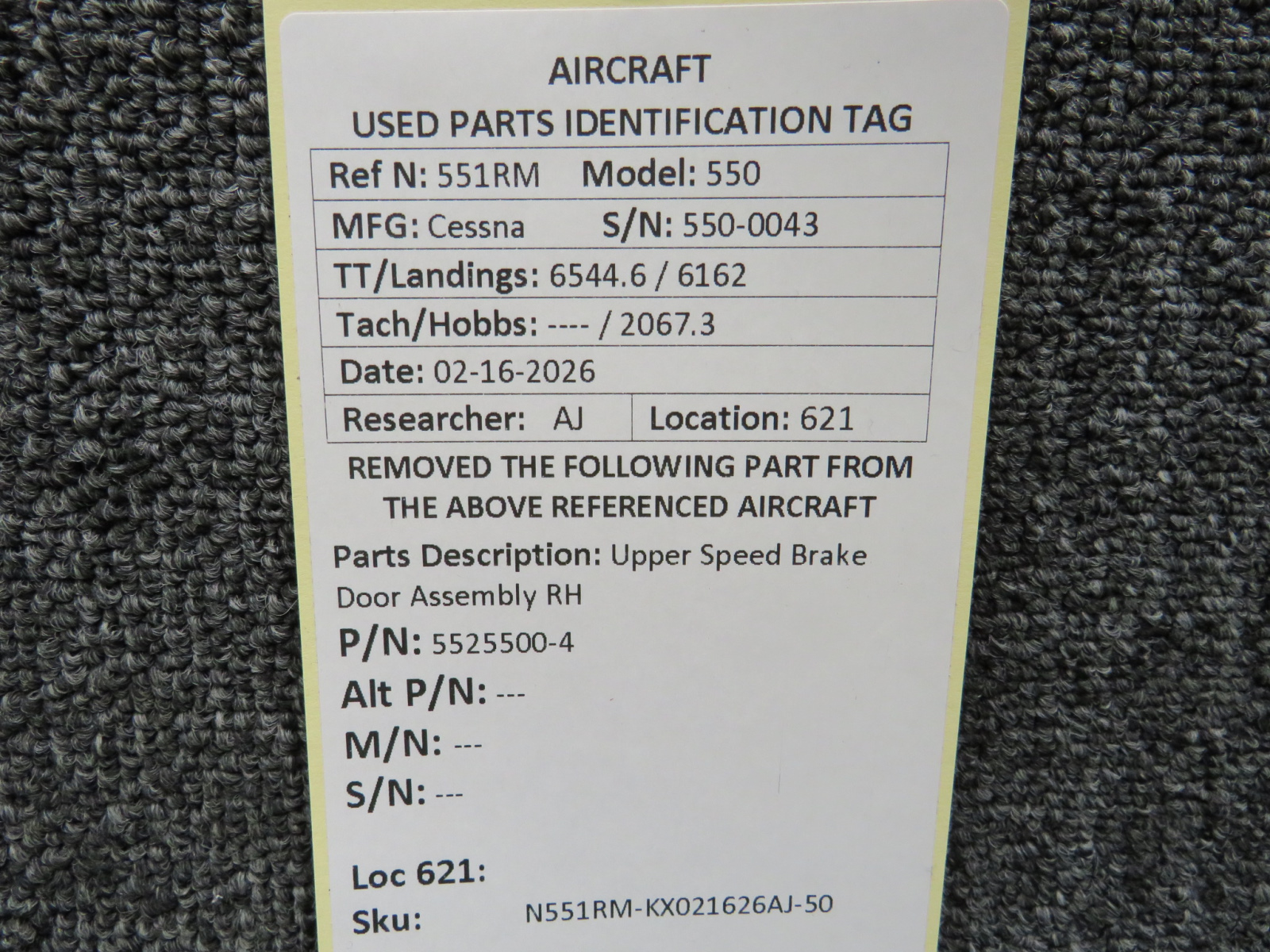 Unless specifically noted, most of our used airplane parts are sold in the condition they were removed, which means you should expect the usual signs of wear and tear.