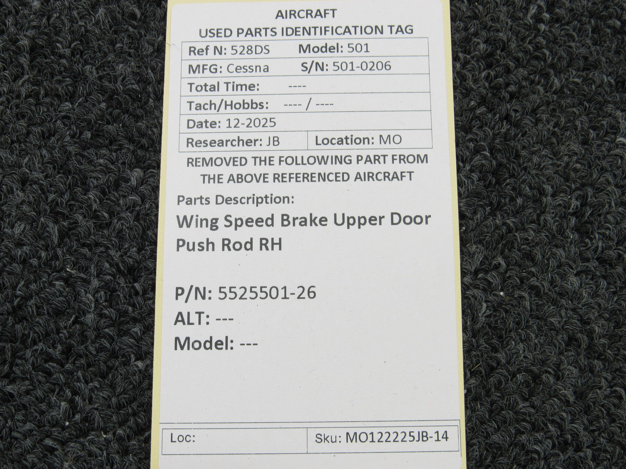 Unless specifically noted, most of our used airplane parts are sold in the condition they were removed, which means you should expect the usual signs of wear and tear.