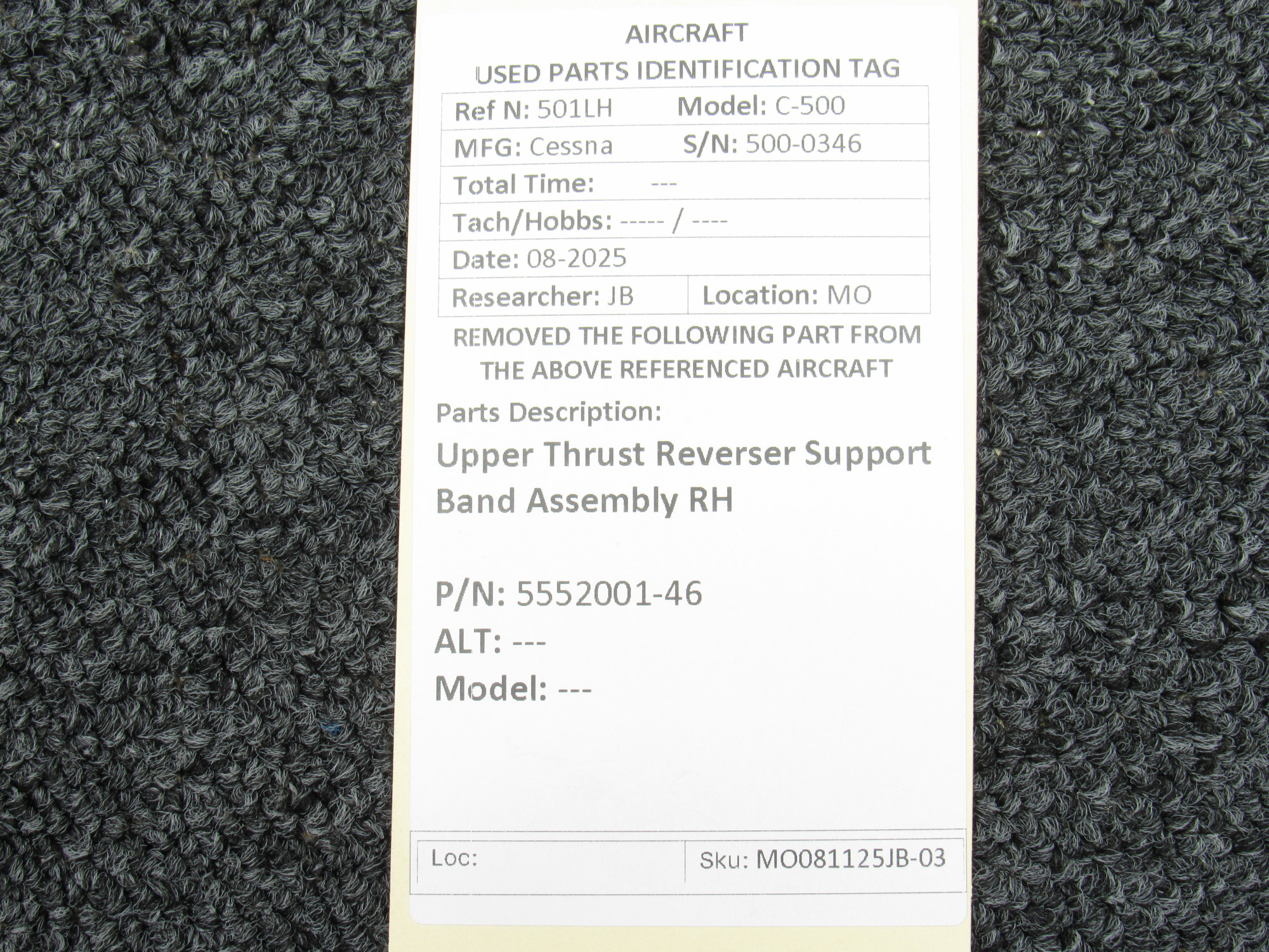 Every part is carefully inspected throughout our process and several times before it goes online. Most items are sold as-removed, just as they came off the aircraft. These parts are not functionally tested. What we do provide is clear photos, full traceability when available, pricing that reflects the as-removed condition, and a no-nonsense 90-day return window.