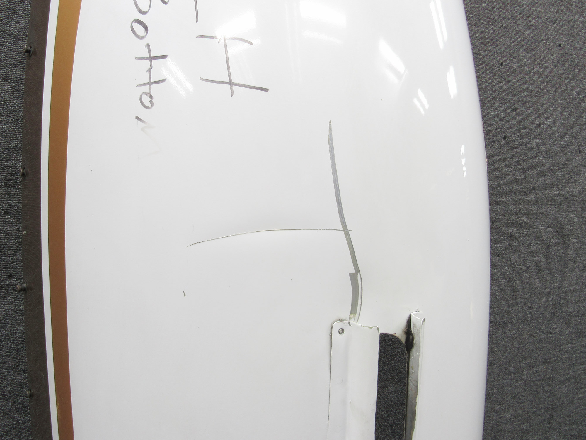 - Dent on outside of skin next to fairing