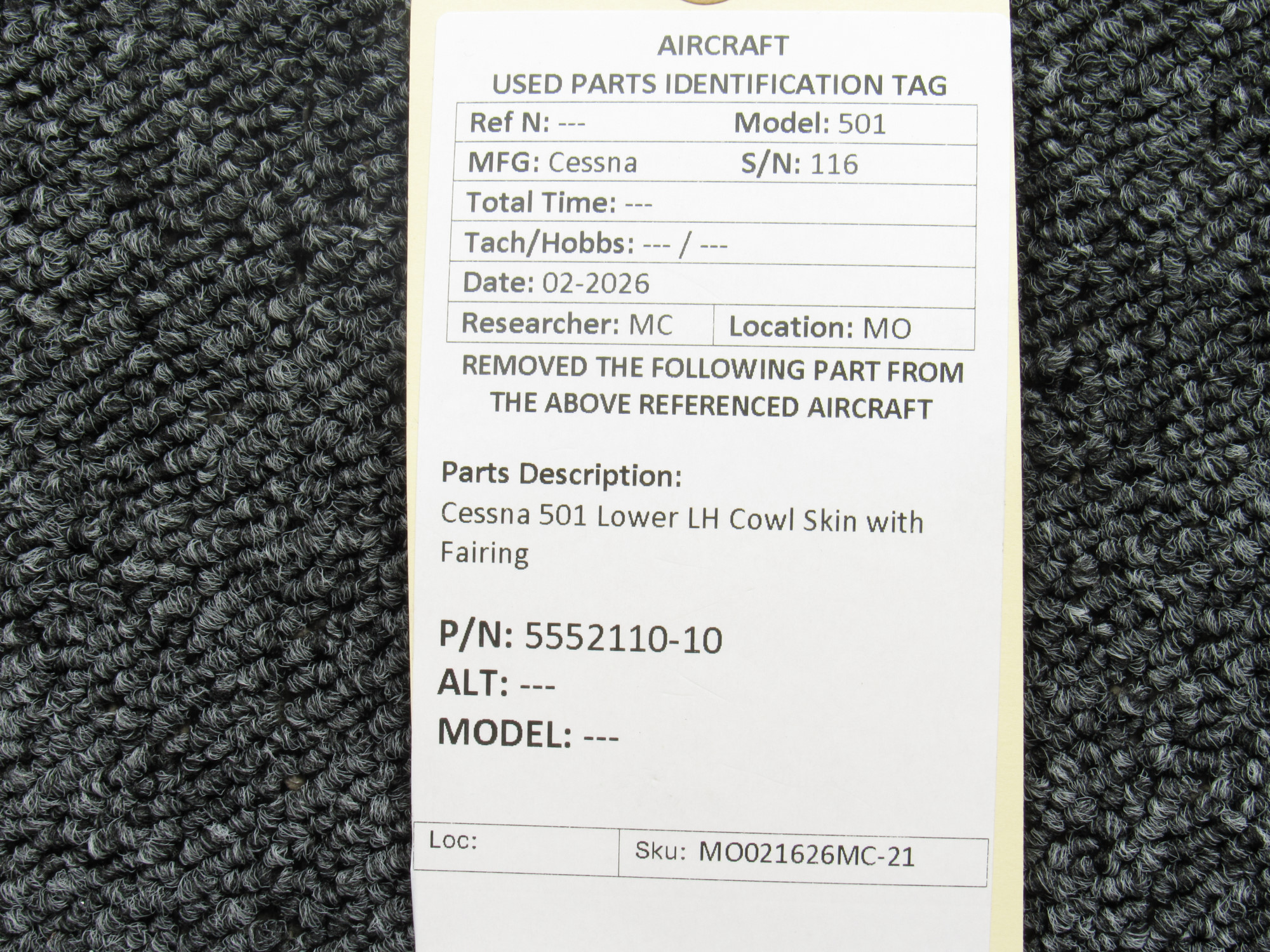 Unless specifically noted, most of our used airplane parts are sold in the condition they were removed, which means you should expect the usual signs of wear and tear.