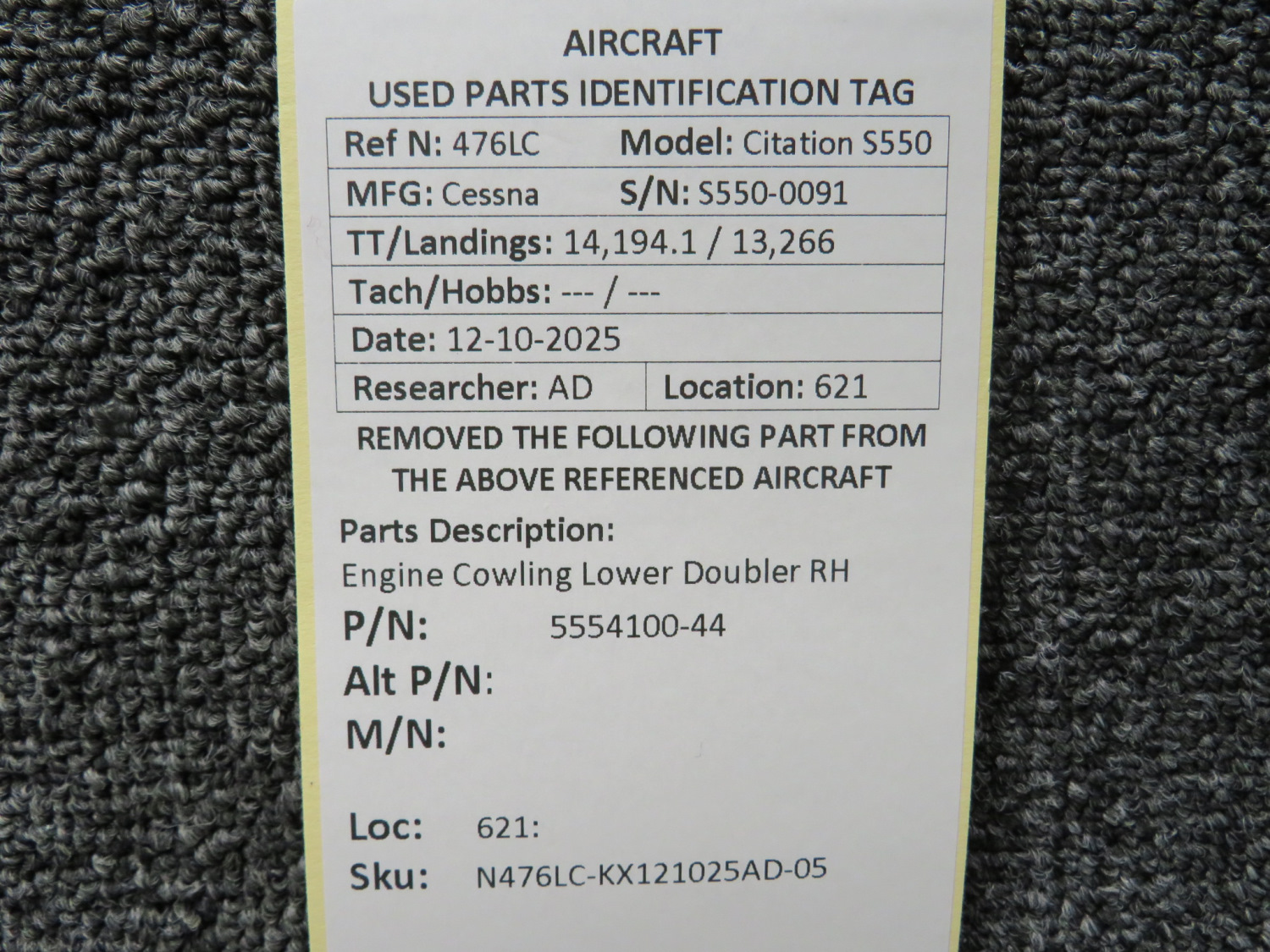 Unless specifically noted, most of our used airplane parts are sold in the condition they were removed, which means you should expect the usual signs of wear and tear.