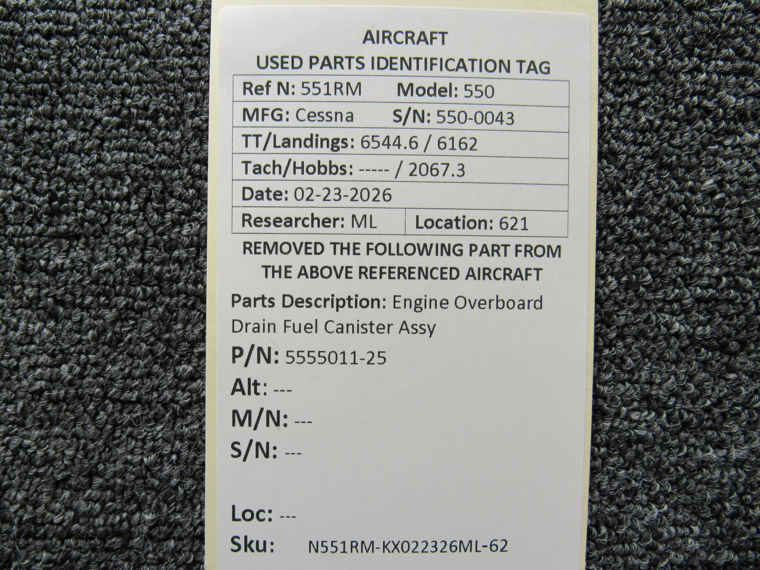 Every part is carefully inspected throughout our process and several times before it goes online. Most items are sold as-removed, just as they came off the aircraft. These parts are not functionally tested. What we do provide is clear photos, full traceability when available, pricing that reflects the as-removed condition, and a no-nonsense 90-day return window.