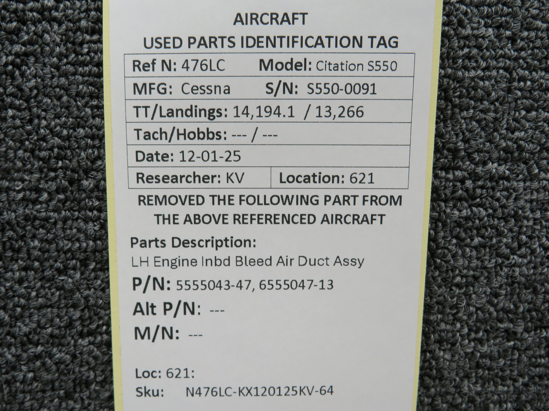 Unless specifically noted, most of our used airplane parts are sold in the condition they were removed, which means you should expect the usual signs of wear and tear.