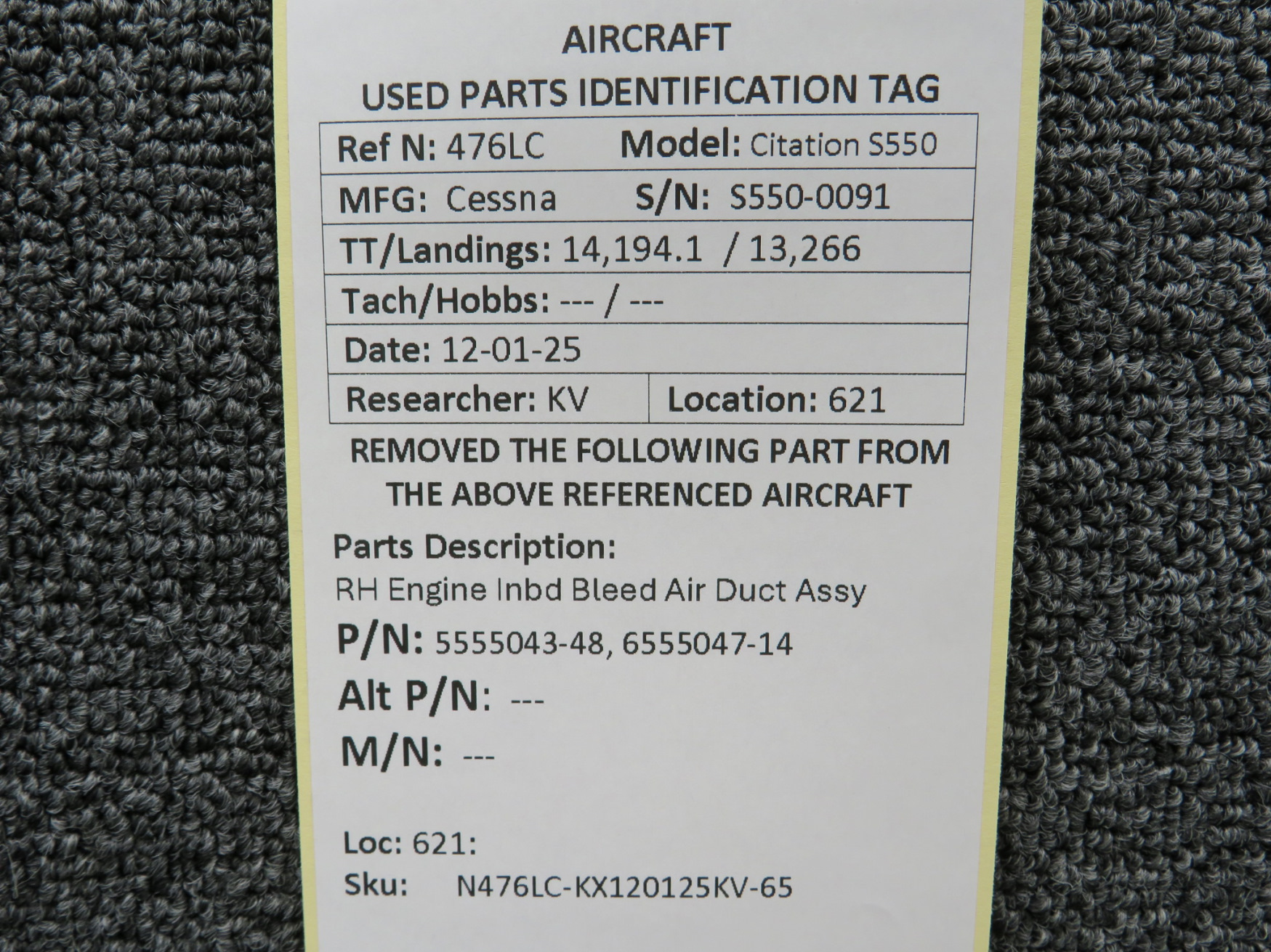 Unless specifically noted, most of our used airplane parts are sold in the condition they were removed, which means you should expect the usual signs of wear and tear.