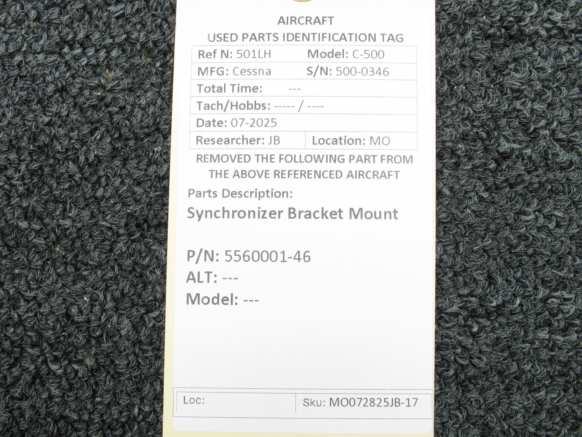 Unless specifically noted, most of our used airplane parts are sold in the condition they were removed, which means you should expect the usual signs of wear and tear.