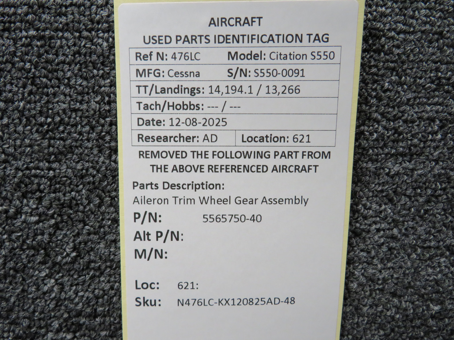Unless specifically noted, most of our used airplane parts are sold in the condition they were removed, which means you should expect the usual signs of wear and tear.